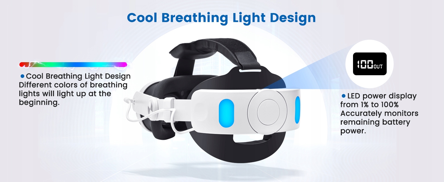 🎮 ПРОХЛАДНАЯ RGB ПОДСВЕТКА: задняя часть головного ремня VR оснащена двумя яркими дышащими RGB-светами, которые будут мигать тремя цветами прохладного дышащего света в течение примерно минуты, когда головной ремень начнет заряжать хоста. Отличное начало для VR-игр!