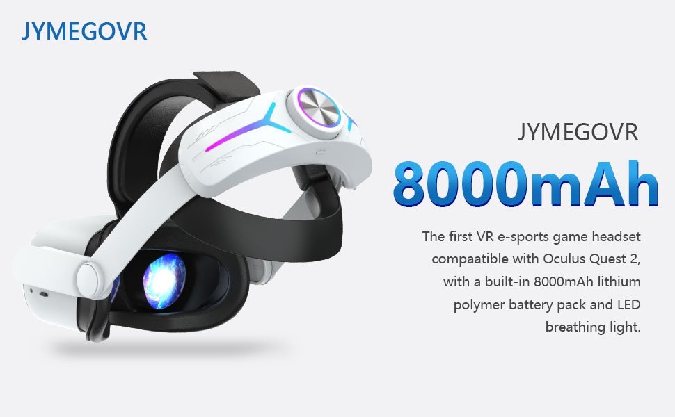 【Аккумулятор 8000 мАч】Ремешок совместим с Oculus Quest 2 со встроенным литий-полимерным аккумулятором емкостью 8000 мАч и высокоскоростной линией передачи, что продлевает время использования гарнитуры на около 3,5-6 часов (в зависимости от применения).