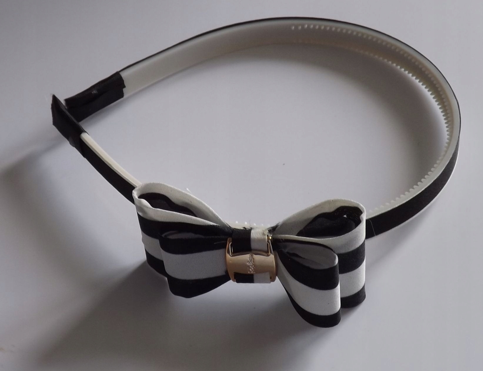 Красивая черно-белая повязка на голову, украшенная черно-белым бантом.