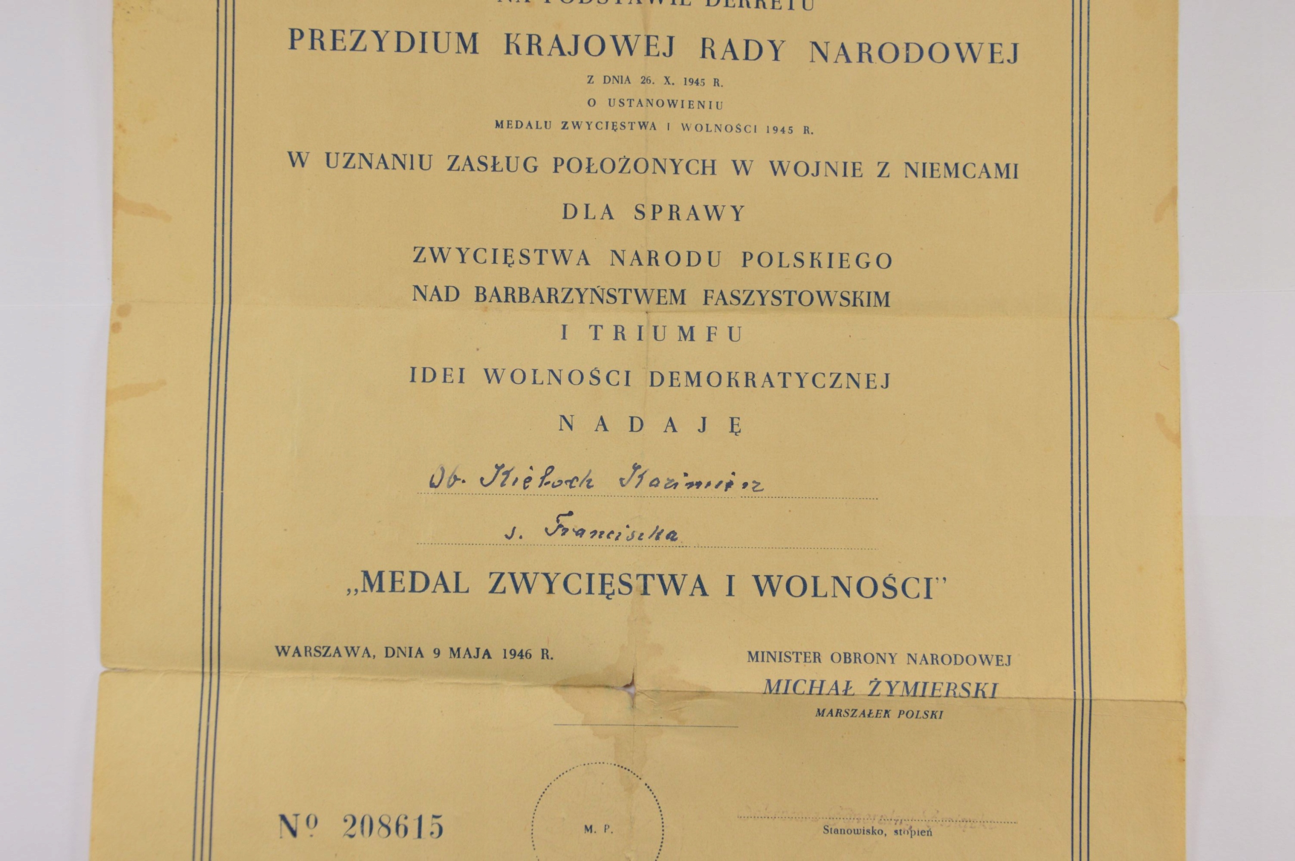 Награда за медаль за победу и свободу, KRN, давая 1947 PartyZant