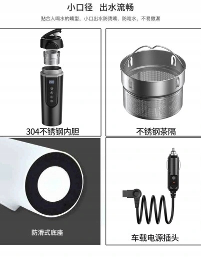 1*Нагретая автомобильная кружка Цвет: черный, белый материал: уплотнительное кольцо, изготовленное из пищевого силикона, внутренний контейнер Материал: нержавеющая сталь 304 Мощность: 12 V-24 V Размер: 210*80 мм Вес: 500 г. Нагревание, интеллектуальный сенсорный экран, длительное тепловое поведение. Силовая мощность. Антикубирование, автоматическое отключение функции.