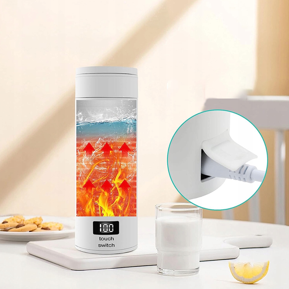 【Портативный чайник】 Этот чайник с вместимостью 380 мл и небольших размеров был специально разработан для приготовления воды, в которой вы можете приготовить чай, кофе или молоко для детей во время путешествий. Легко транспортировать и хранить благодаря отдельному кабелю