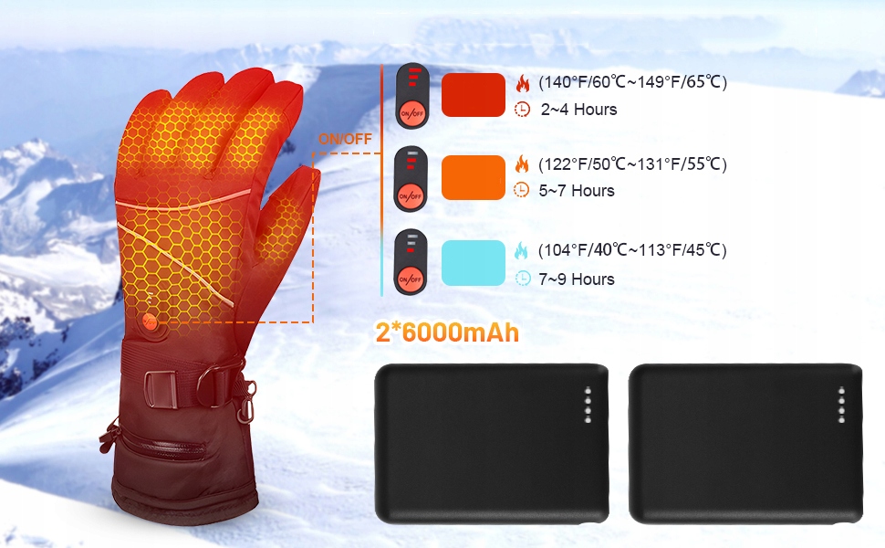 hetic 【Быстрое нагревание и широкий диапазон отопления】 Наши электрические перчатки нагревают руки с помощью элементов нагревания углеродного волокна, которые могут быстро согреть всю заднюю часть рук, пальцы и обертываться вокруг Кончики пальцев, поддерживая кровообращение в ваших руках. Подкладка изготовлена из теплого и легкого изоляционного хлопка с хорошими изоляционными свойствами. Главные перчатки могут быстро согреть весь интерьер за несколько секунд, поэтому вы можете наслаждаться активными мероприятиями даже в холодную зиму! > Электрические перчатки оснащены двумя литиевыми батареями 6000 мАч, батарея высокой емкости обеспечивает длительное время автономной работы. С 3 уровнями нагрева, чтобы легко скорректировать температуру до ваших потребностей. Их можно использовать около 8 часов с самой высокой температурой (150 ° F/65 ° C), около 9 часов со средней температурной настройкой (131 ° F/55 ° C), около 12 часов при настройке самой низкой температуры (113 ° F/45 ° C)! ветер и дождь в холодные дни. В подкладках используется мягкая хлопковая и тепловая изоляция, чтобы поглощать влагу и держать руки сухими и теплыми. Регулируемые ветрозащитные зажимы и полосы могут быть отрегулированы, чтобы предотвратить потерю температуры и предотвратить снег или холодный воздух, обеспечивая лучшую защиту в очень холодные дни! /b> Эта нагреваемая перчатка состоит из -за сенсорных датчиков на большом и указательном пальце, которые позволяют бесплатно использовать сотовые телефоны, таблетки или приемные соединения без удаления тепловых перчаток. Держите руки в тепре и удобстве использования! Огребные лыжные перчатки с ручной частью изготовлены из прочной, не сокрушительной текстуры PU, что позволяет легко удерживать электронику/рулевое колесо/рулевое колесо. Не позволяйте холодным кончикам пальцев остановить вас от любимого открытого занятия этой зимой. Такие, как езда на мотоцикле, катание на лыжах, катание на коньках, охота, рыбалка, кемпинг, походы, гонки, снежный скутер, альпинизм, бег, катания на санках или другие занятия на свежем воздухе! Две рефлексивные полосы служат предупреждением, чтобы обеспечить вашу безопасность во время путешествия ночью. Перчатки с подогревом - лучший выбор на день рождения, Рождество, Хэллоуин, День Благодарения, День отца. Нет ничего более важного, чем зимняя жара и здоровье