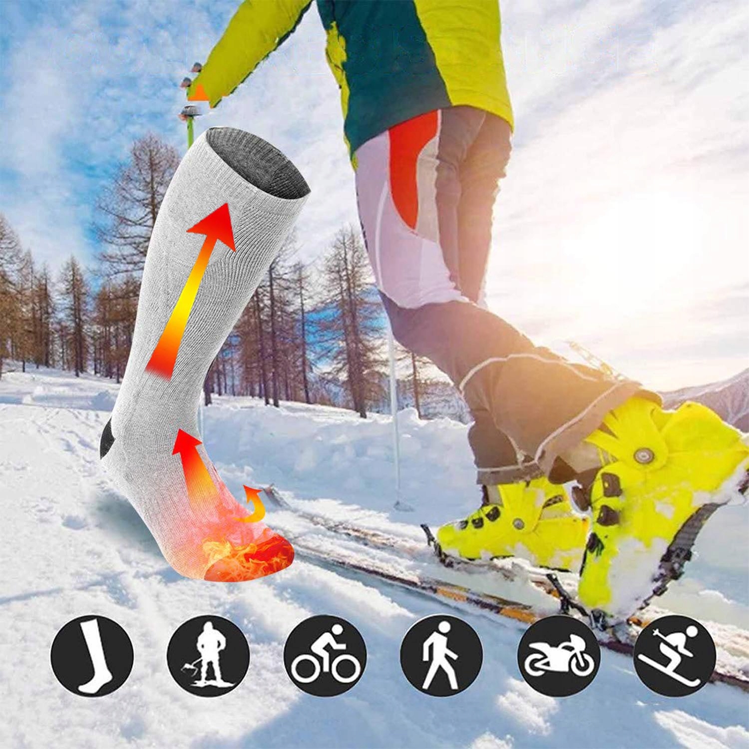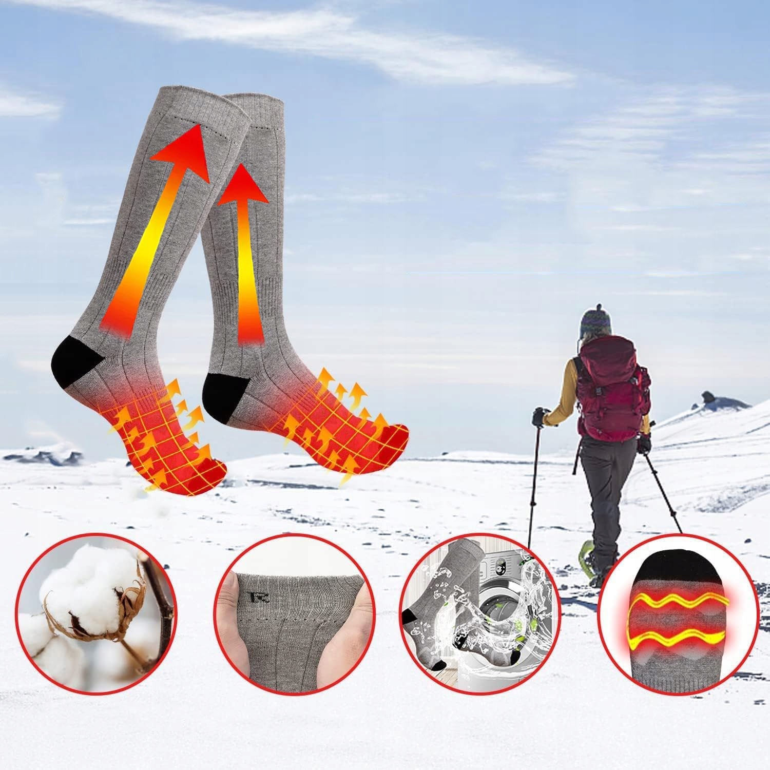 Теплые носки с подогревом изготовлены из высококачественного хлопка и шерсти, мягких, дышащих и гибких. Сочетание эргономичных конструкций и тепла -поглощающих петли, эти подогреваемые носки для мужчин и женщин обеспечат вам удобную зиму. езда на велосипеде, езда на Мотоцикл, кемпинг, ходячий туризм, катание на лыжах, катание на коньках, работа в свежем воздухе и т. Д. Это идеальный теплый подарок для любви, родителей и друзей на День Благодарения, Рождество и День святого Валентина!