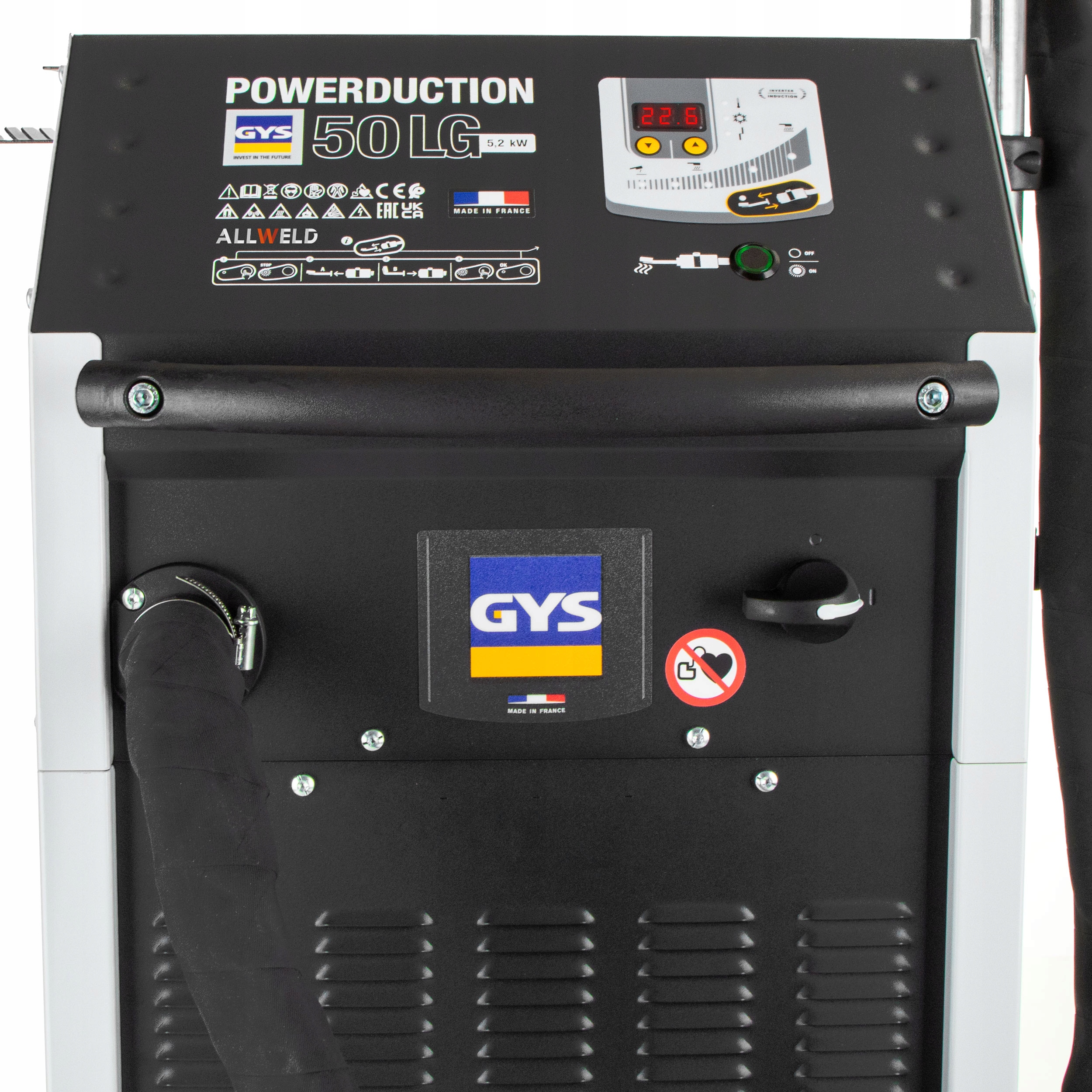 POWERDUCTION 50LG — самый эффективный однофазный обогреватель этой серии, способный непрерывно нагреваться на полной мощности. Идеально подходит для длительной работы, благодаря высокой мощности подходит и для правки металлических конструкций. Устройство оснащено системой PFC (Power Factor Correction) и источником питания PROTEC 400. Эти технологии имеют 3 основных преимущества; Питание от сети от 185 В до 265 В, защита от перенапряжения до 400 В, экономия энергии до 30 % и штекерное соединение 25 А/230 В для максимального использования.