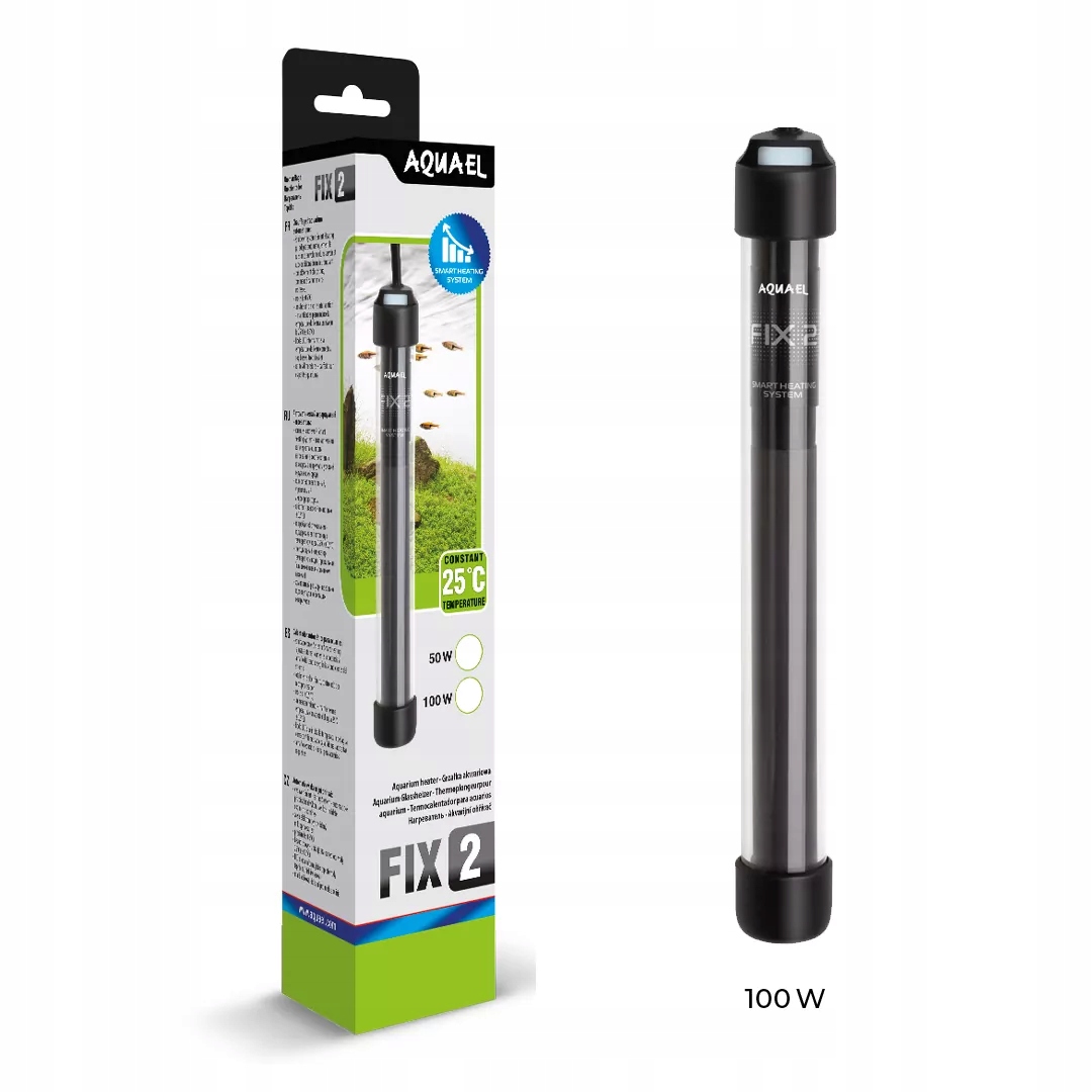 мы производим нагреватель Fix 2 в двух моделях с Power 50 I100 W. Это означает, что он может использоваться владельцами как небольших, даже 10-литровых резервуаров, но и владельцев 100-литровых аквариумов.