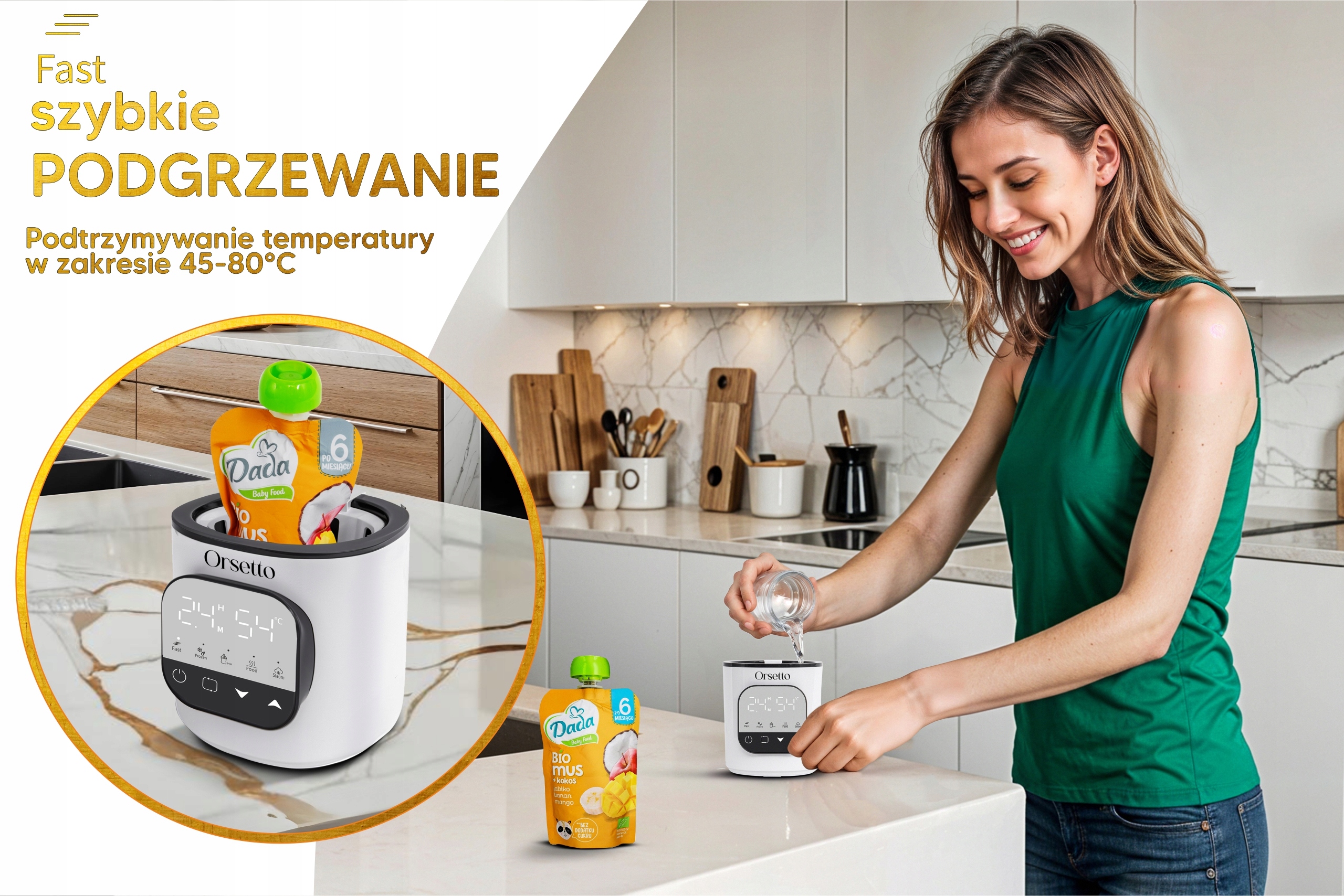 В повседневной жизни родителя нет недостатка в трудностях, поэтому мы рады представить нашему продукту нагреватель Orsetto, который был создан, чтобы упростить и приятно выполнять ваши ежедневные обязанности. Откройте для себя нагреватель и стерилизатор устройства 5IN1 - Орсетто, оснащенные электронным дисплеем времени и температуры. Благодаря 5 различным режимам эксплуатации - быстрое нагрев, оттаивание, нагрев твердых продуктов, нагрев жидкости и стерилизация, устраняющие до 99,9% бактерий - ежедневные задачи станут проще и меньше времени.