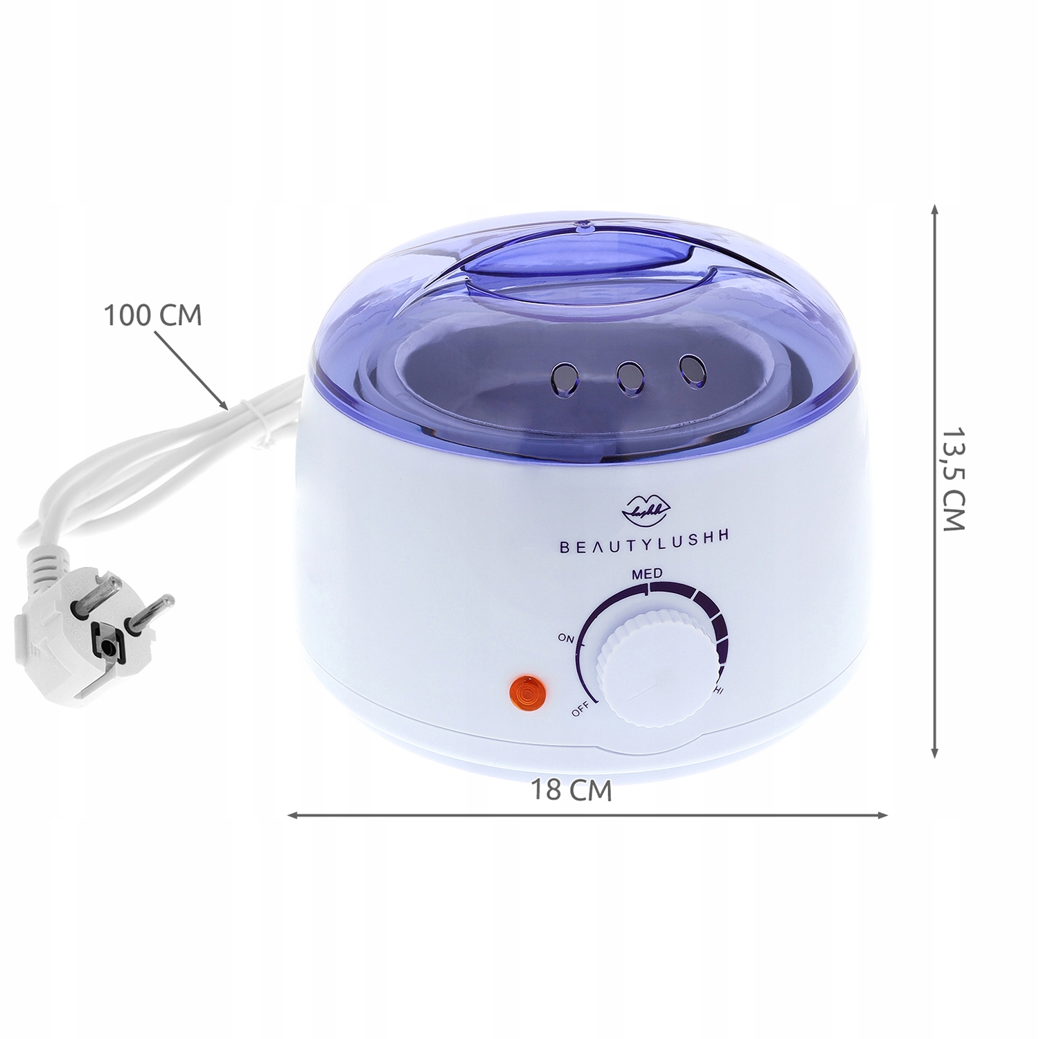- ТЕХНИЧЕСКИЕ ХАРАКТЕРИСТИКИ - мощность нагревателя: 100 Вт; напряжение: 220-240В; 50-60 Гц; объем чашки: 540 мл; применение: твердый воск, мягкий воск; размеры: 18 х 18 х 13,5 см; длина кабеля: 100 см; вес: 488 г; вес с упаковкой: 634 г.