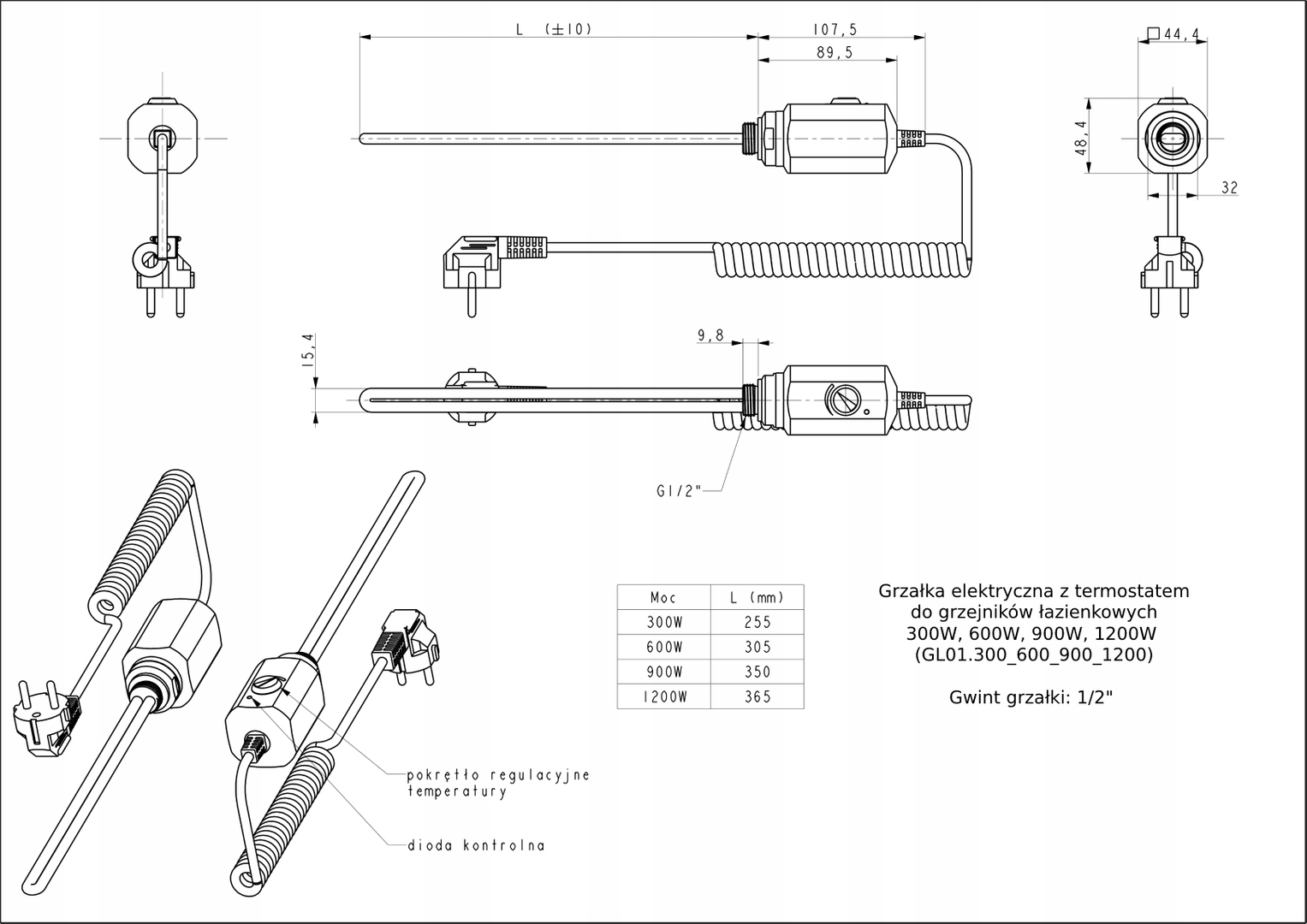 Электрический нагреватель с регулятором температуры предназначен для нагрева воды в радиаторе ванной комнаты (независимый водонагреватель или подключен к центральной установке отопления). Устройство предназначено для домашнего использования. Устройство состоит из нагревательного элемента 600 Вт, электронного термостата, который обеспечивает регуляцию температуры воды в радиаторе и шнур питания универсальной пробкой. Освещение сигнального диода указывает на работу нагревателя.