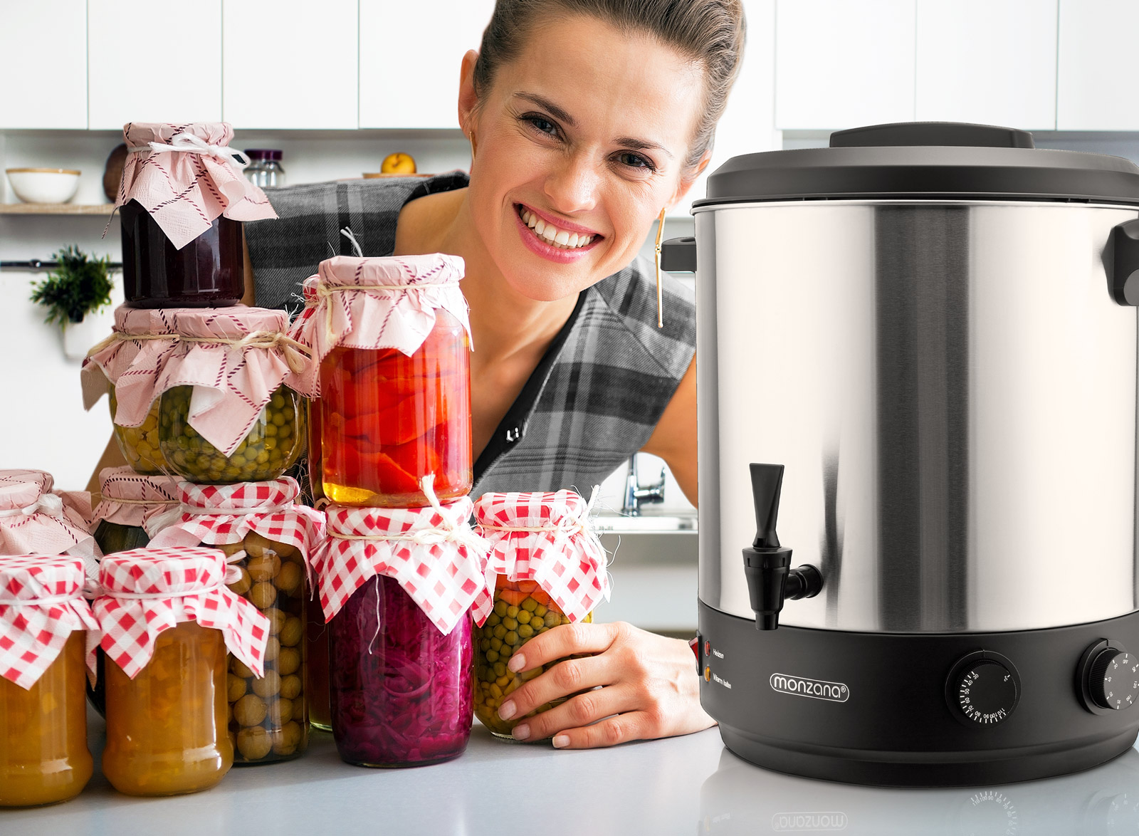 В 28-литровой емкости со встроенным краном легко можно вскипятить до 14 банок по 1 литру, с завинчивающейся крышкой или резиновым кольцом.