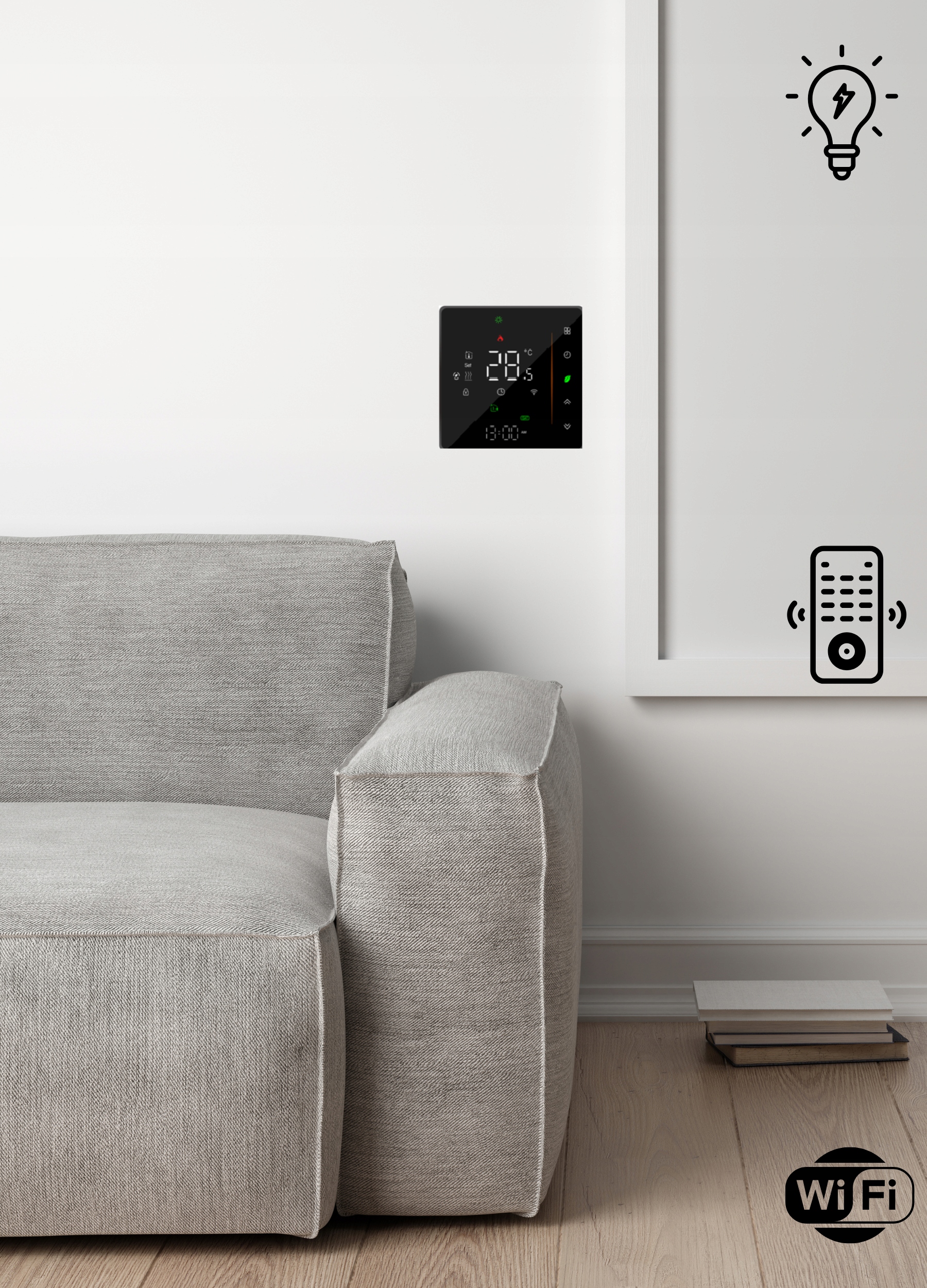 ▶Слегка закругленные углы без рамки придают термостату современный вид;