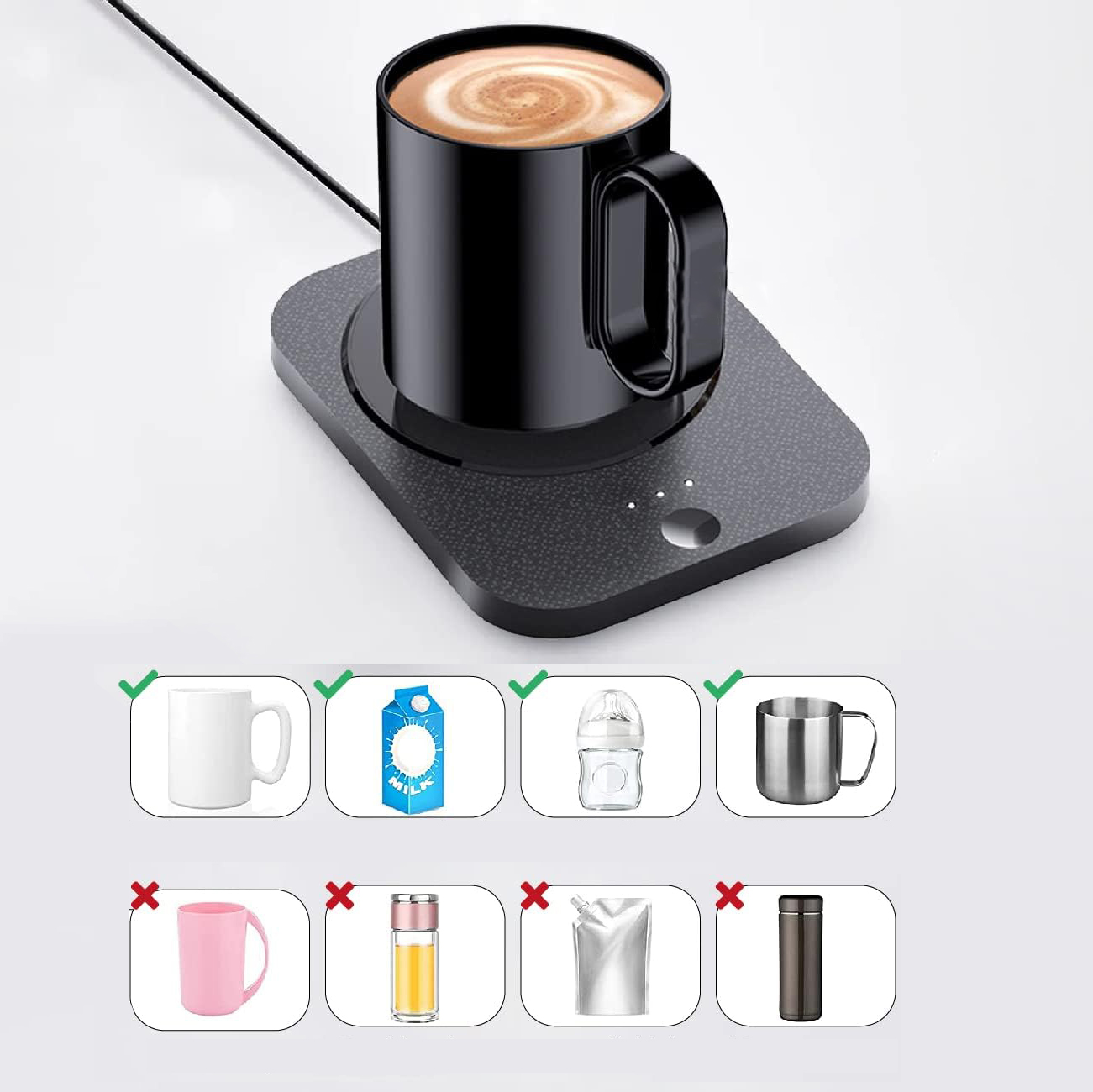 🔥【БЫСТРЫЙ НАГРЕВ】Всего за 5 минут ваш кофе/вода/молоко станет теплым. Три уровня регулируемой температуры: первый уровень — 50°C, второй уровень — 55°C и третий уровень — 60°C.