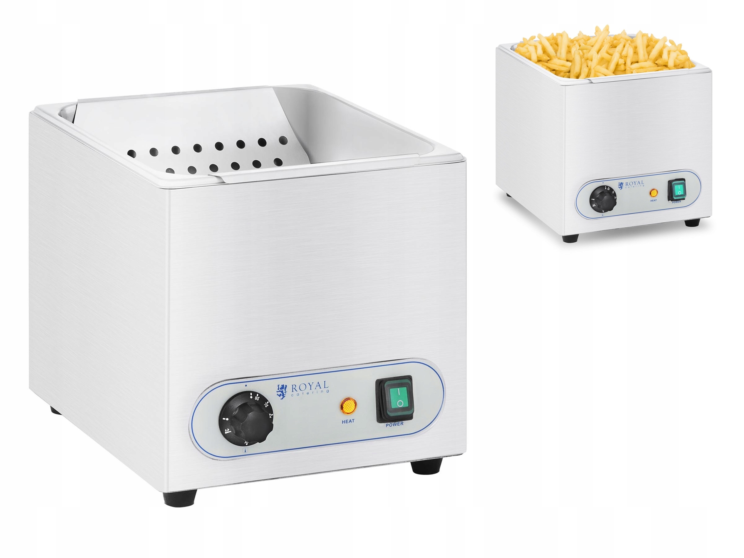 Подогреватель для картофеля фри Royal Catering хорошо подойдет в ресторанах, барах быстрого питания, фудтраках и в качестве оборудования для предприятий общественного питания. Он позволяет поддерживать температуру картофеля фри и других подобных блюд, чтобы они были готовы к подаче в любое время. Устройство имеет сертификат СЕ, требуемый Санитарно-эпидемиологической станцией.