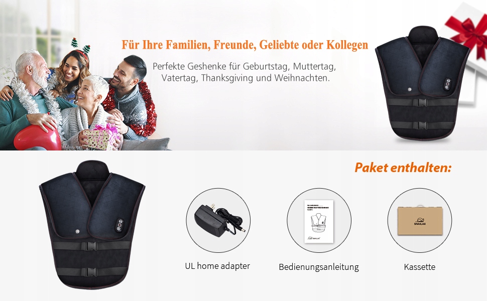 Большой размер для полного покрытия - Электрическая грелка Snailax имеет большой и идеальный контур для покрытия шеи и руки, а также спину. Тепловой массаж с вибрацией снимает скованность, напряжение и мышечные спазмы.
