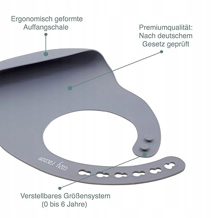 - Удобная и регулируемая застежка адаптирует нагрудник к шее ребенка.