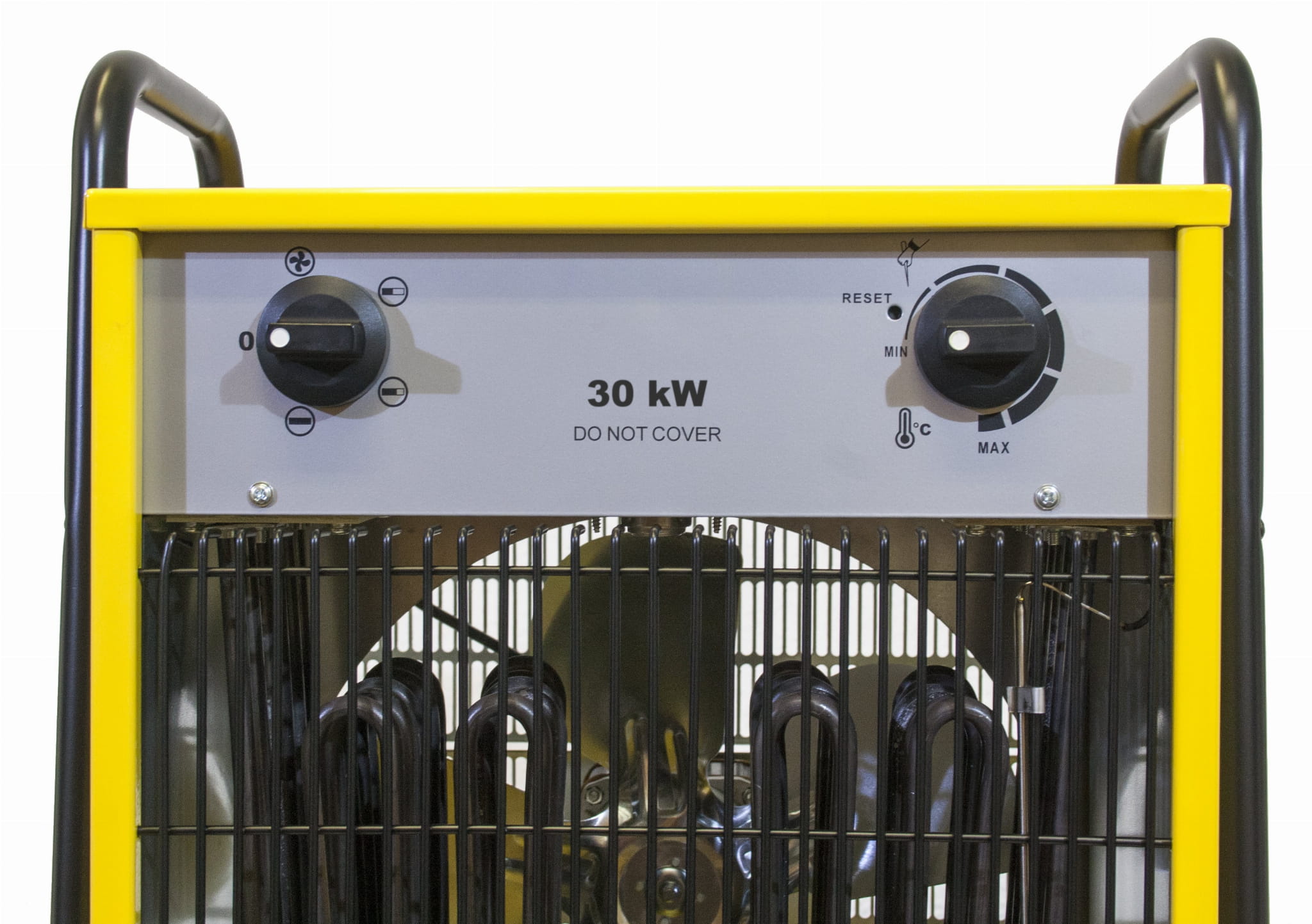 Электронагреватель т.н. Воздуходувка или тепловентилятор – это устройство, в котором нагреватели нагреваются и теплый воздух нагнетается в помещение с помощью высокопроизводительного вентилятора. Электрообогреватели Ekonair EL30 могут работать в трех режимах: вентиляция, 1/2 мощности (15 кВт) и полная мощность (30 кВт).