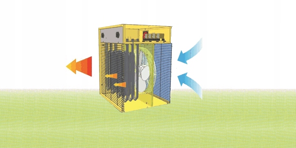 Холодный воздух засасывается в устройство вентилятором, затем поступает к выходному отверстию нагревателя и нагревается нагревателем. В этом процессе генерации тепла не используется открытое пламя, не потребляется кислород и не образуются выхлопные газы, что делает этот тип обогревателей идеальным для плохо вентилируемых помещений.