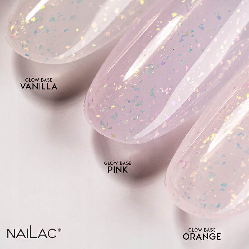 NaiLac Glow Base 7 мл каучукова основа з частинками нігтів На вибір