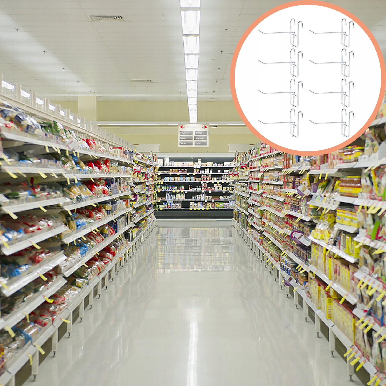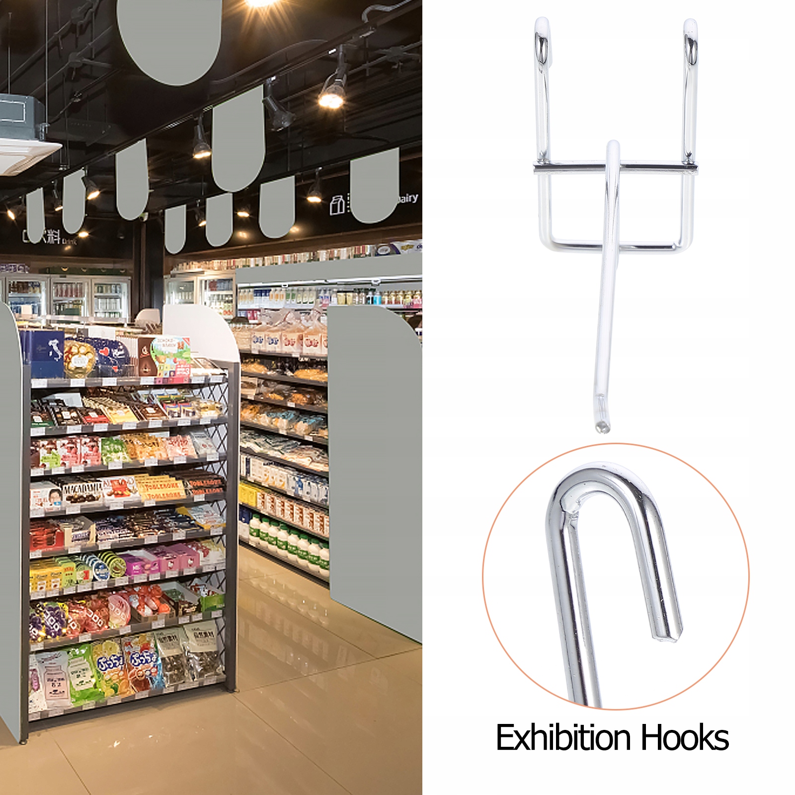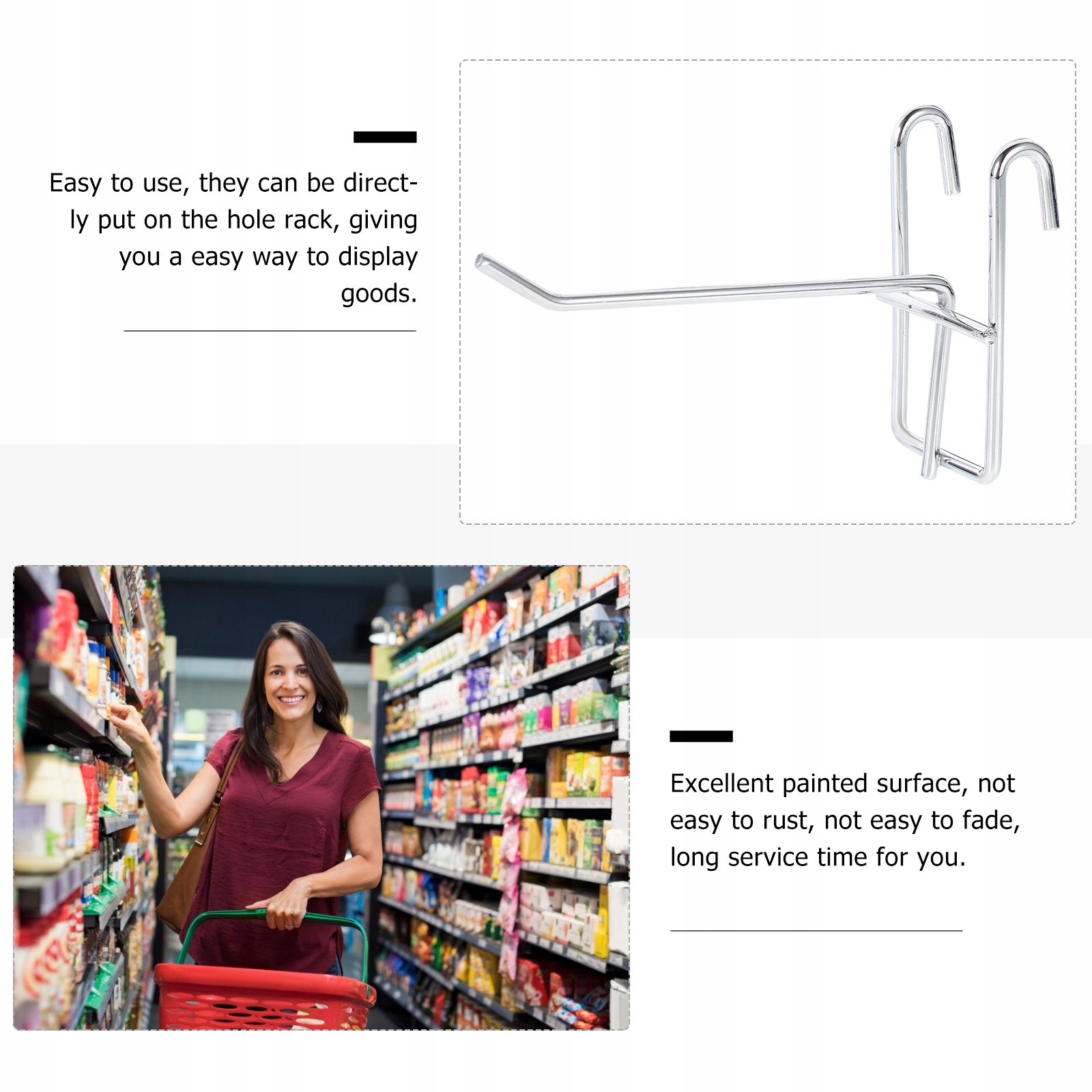 Крючки можно прикрепить к стойке с товарами для демонстрации вашей продукции.