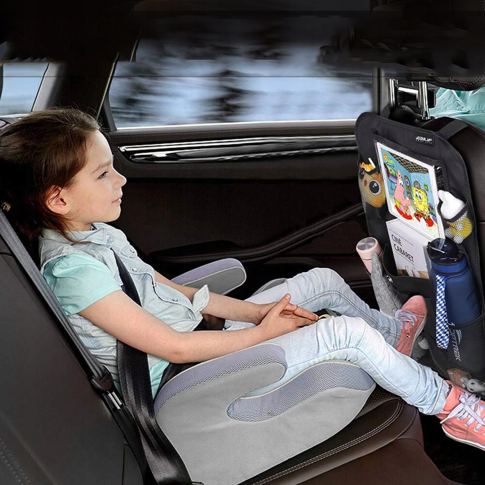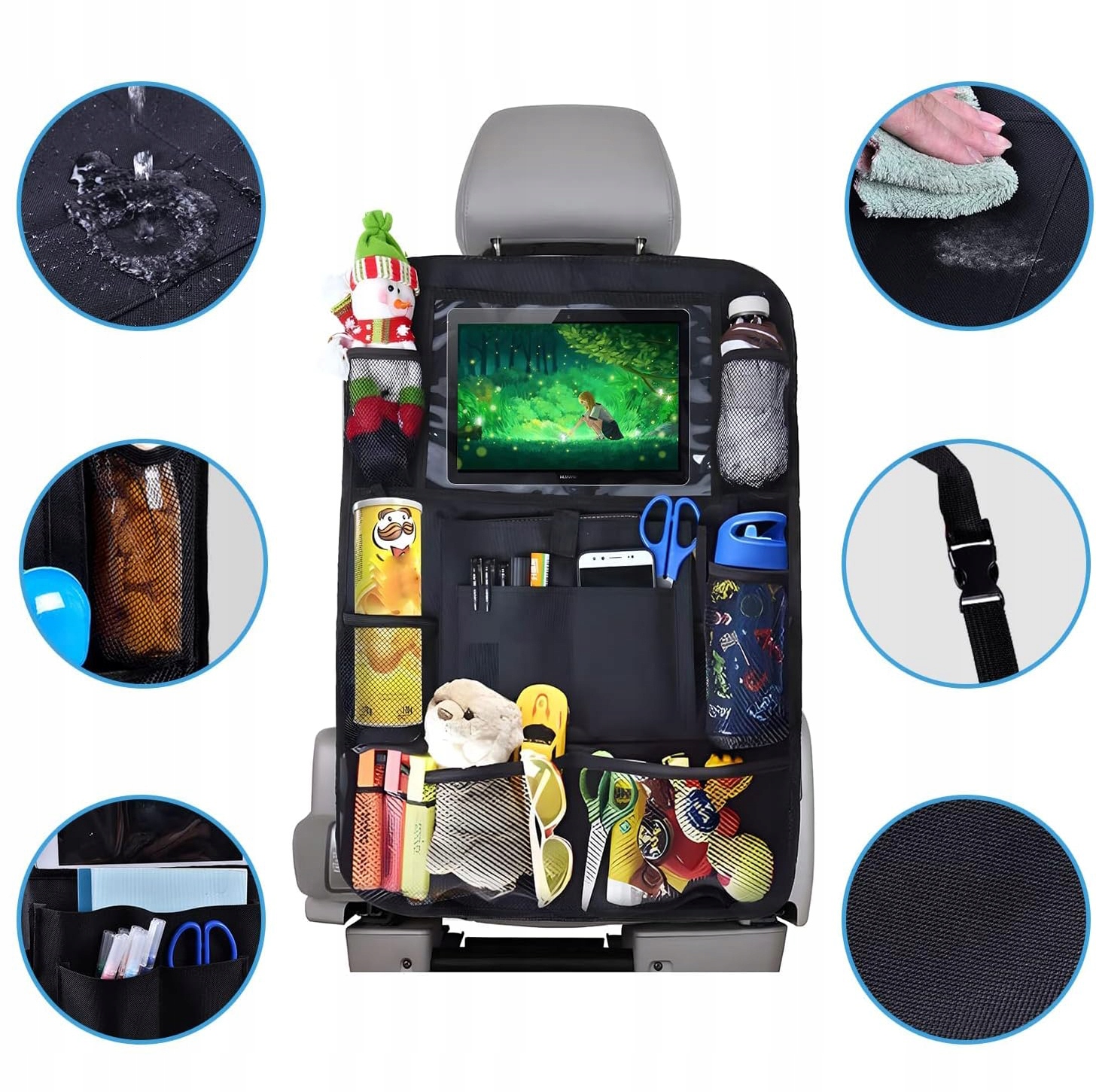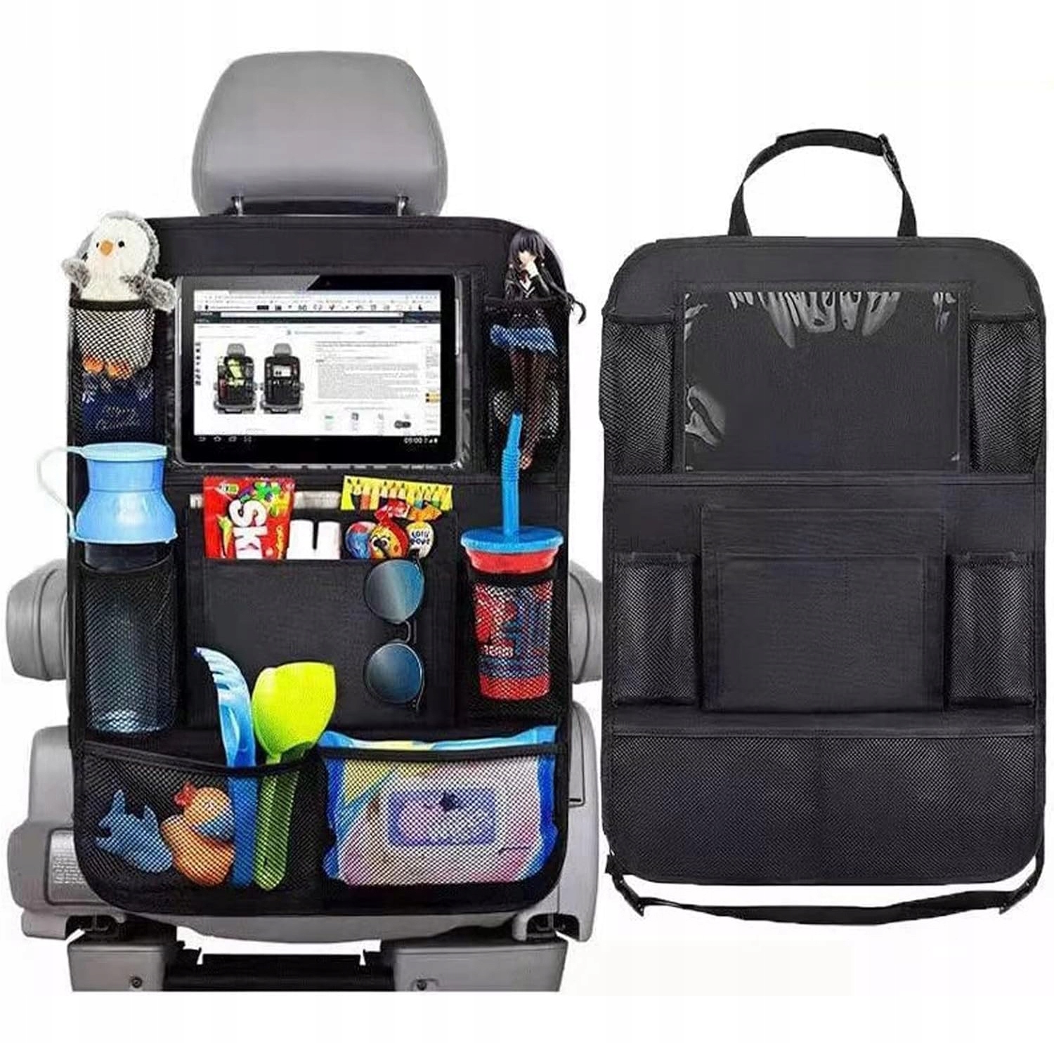 🚗🚗 Высокая емкость: Организатор для заднего сиденья автомобиля с размерами, увеличенными до 62 x 42 см; Поверхность прозрачного окна достигает 27 х 20 см, что означает, что в нем можно легко хранить iPad или планшет. Благодаря этому люди, сидящие на заднем сиденье, могут наслаждаться вождением радости благодаря таблетке; Защитник Backrest имеет 10 отсеков для хранения, которые предоставляют больше места для хранения напитков, игрушек для детей, книг и журналов, что делает путешествие проще и приятнее.