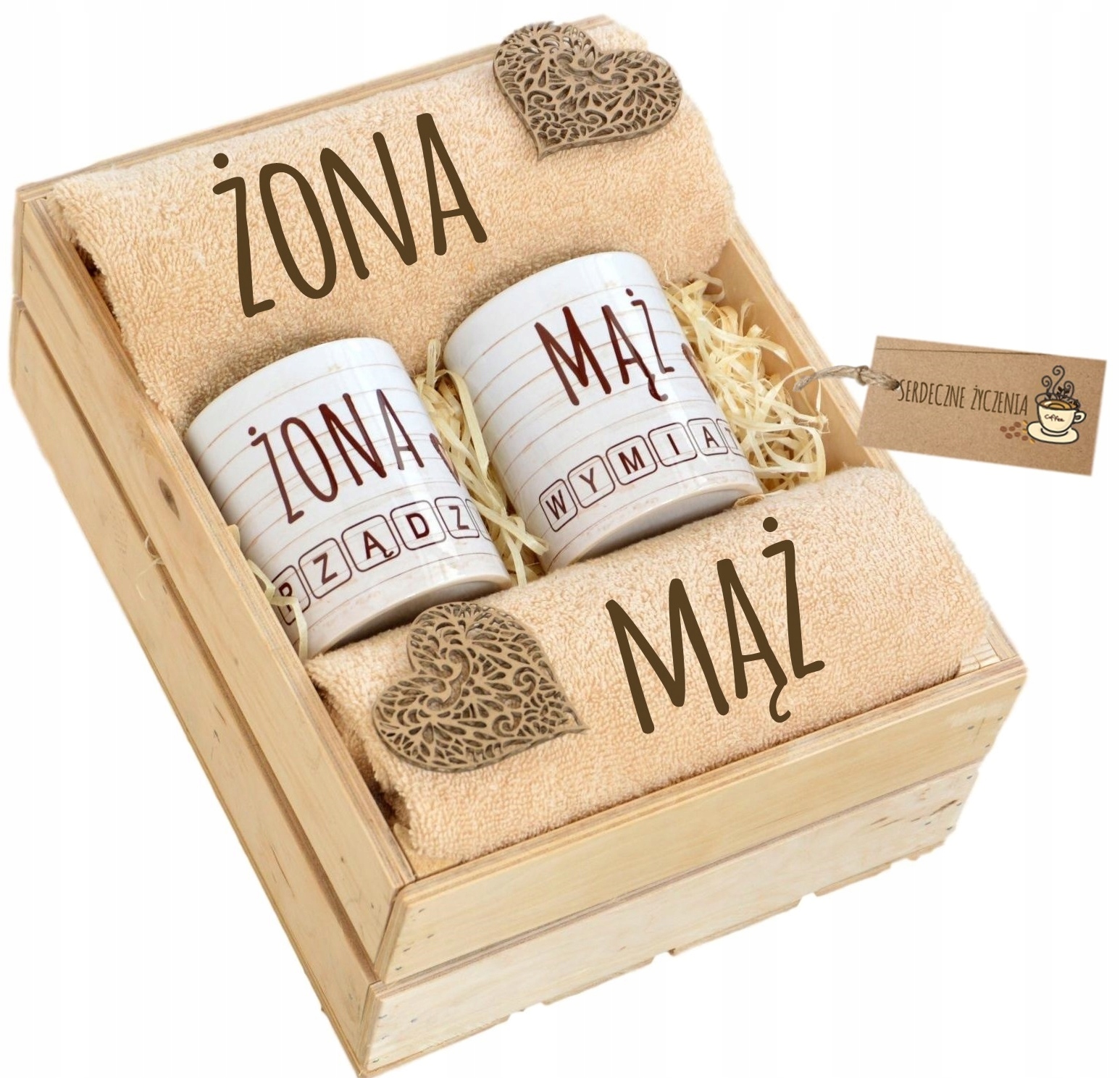 Оригинальный ЭКО-набор в деревянной коробке станет отличным подарком на любой случай.Выберите этот уникальный набор в качестве подарка на новоселье, свадьбу или годовщину свадьбы, и вы доставите получателю огромную радость. КРУЖКИ и ПОЛОТЕНЦА будут иметь ОРИГИНАЛЬНЫЕ стойкие отпечатки. С таким очаровательным подарком вы превратите каждое совместное чаепитие или кофе в приятное мгновение.