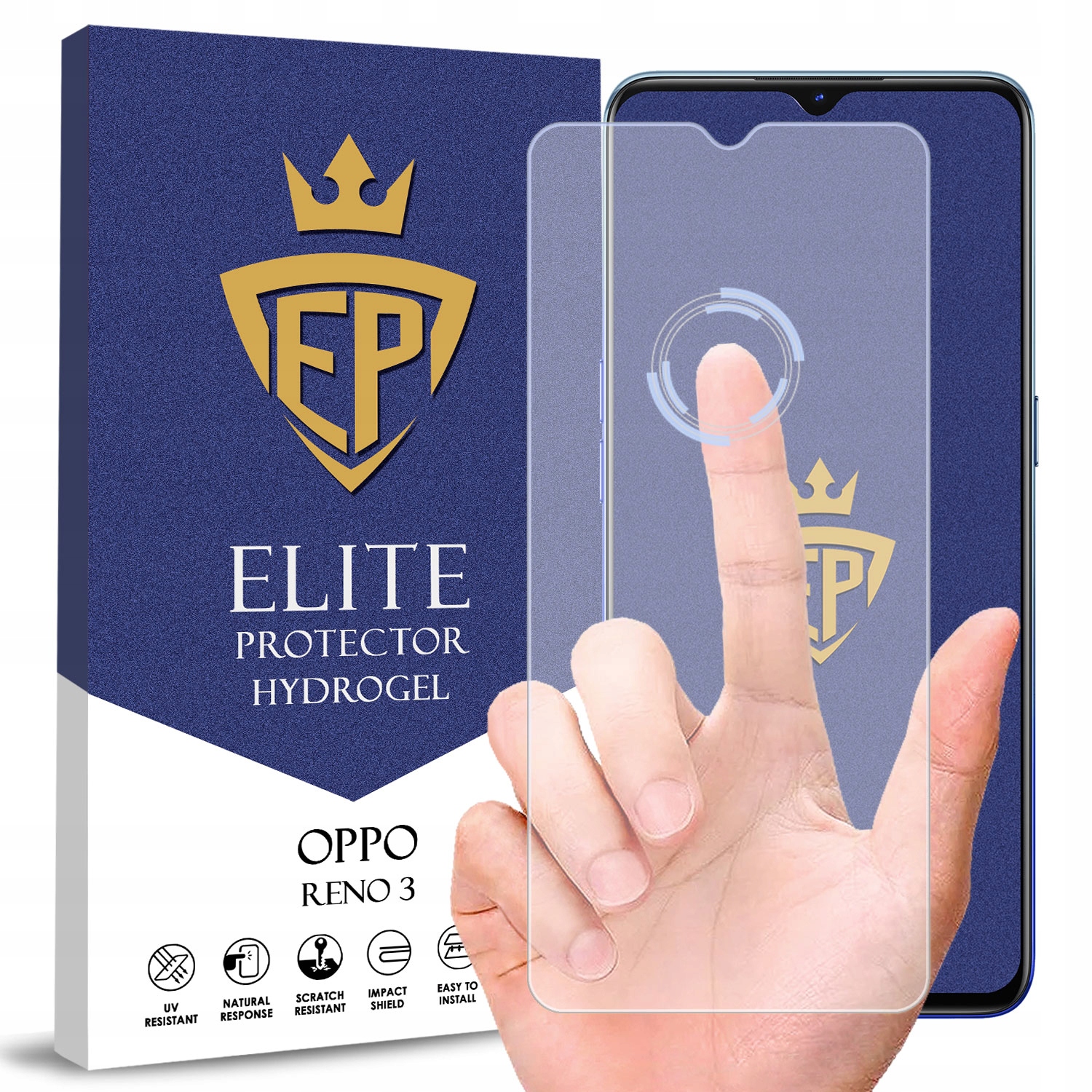Оригинальное гибридное стекло 5D Elite Protector, идеально подходящее ко всему экрану Oppo Reno 3, с инновационным самовосстанавливающимся покрытием Heal Pro
