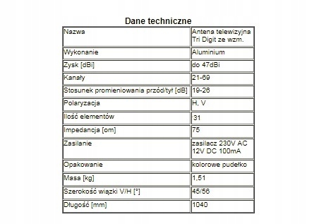 - Dipol Tri Digit — 31-элементная антенна для каналов 21–69, предназначенная для приема как цифрового сигнала DVB-T, передаваемого от наземных передатчиков, так и аналогового сигнала. Характеризуется небольшими габаритами (длина 104 см) и высокой прибылью. Встроенный усилитель обеспечивает суммарное усиление антенны до 47дБи.