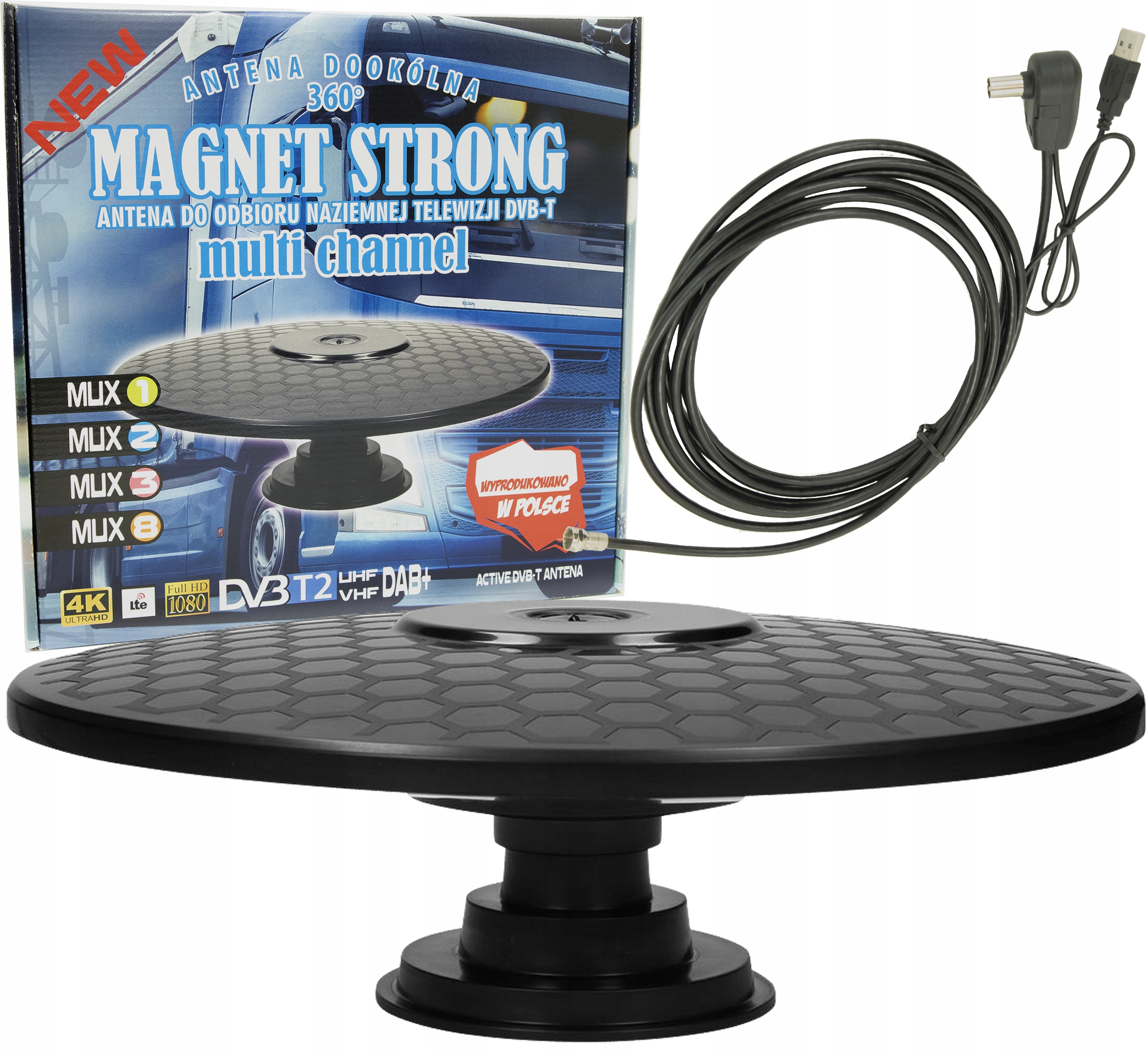 Антенна DVB-T2 MAGNET STRONG WIEDYSKA чрезвычайно проста в установке. В комплект входит устойчивое магнитное основание длиной 9,5 см, которое можно легко прикрепите его к кузову вашего автомобиля. Безопасные антенны можно использовать на кузове только при неподвижном автомобиле.