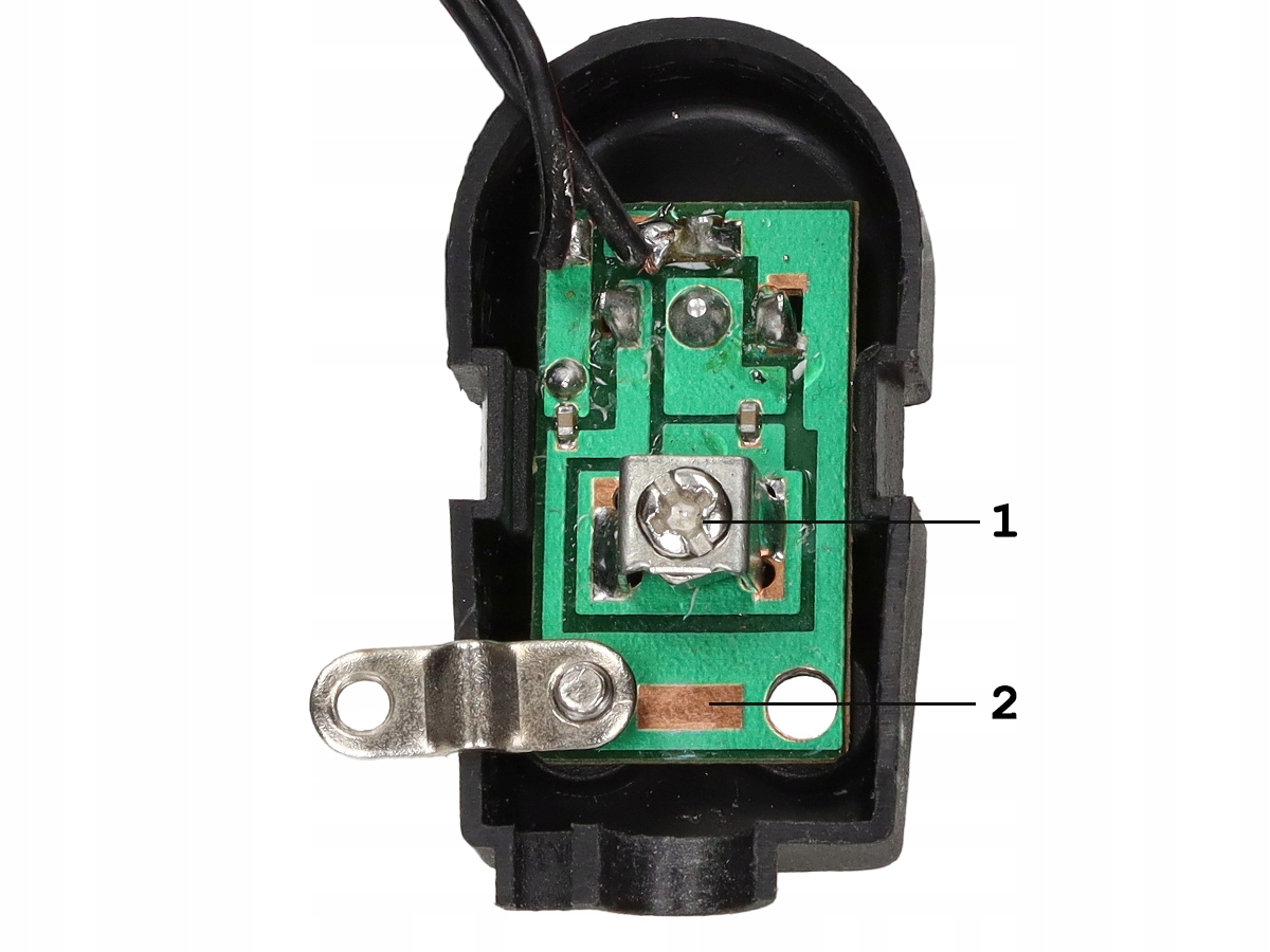 2. Оплетка кабеля должна располагаться непосредственно в контакте с зеленой пластиной в отведенной медной зоне. Держатель (серебряная пластина), удерживающий кабель, не проводит сигнал (заземление).