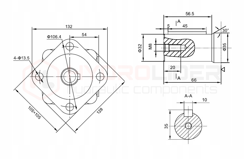 ПОГЛОЩЕНИЕ: 200 см3/об; ВАЛ: 32 мм; СКОРОСТЬ: 370 об/мин