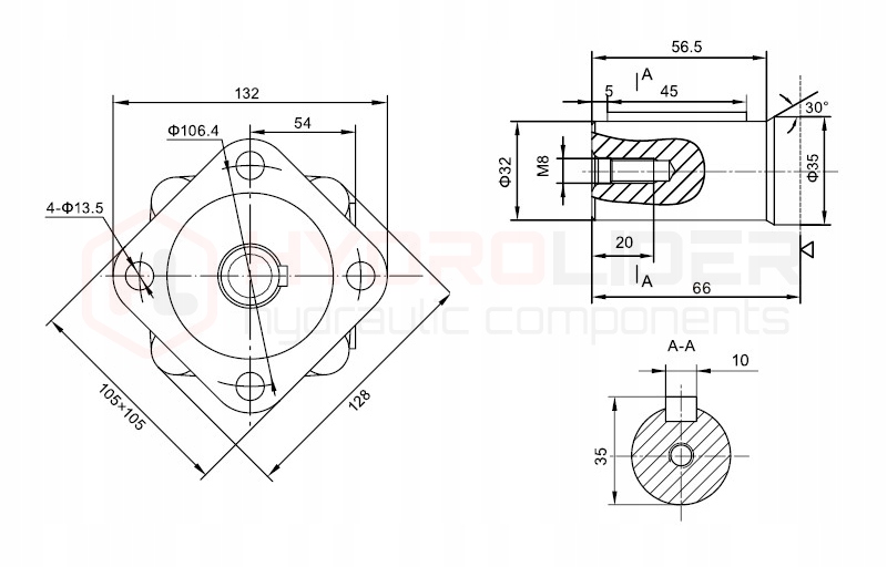 ПОГЛОЩЕНИЕ: 250 см3/об; ВАЛ: 32 мм; СКОРОСТЬ: 295 об/мин