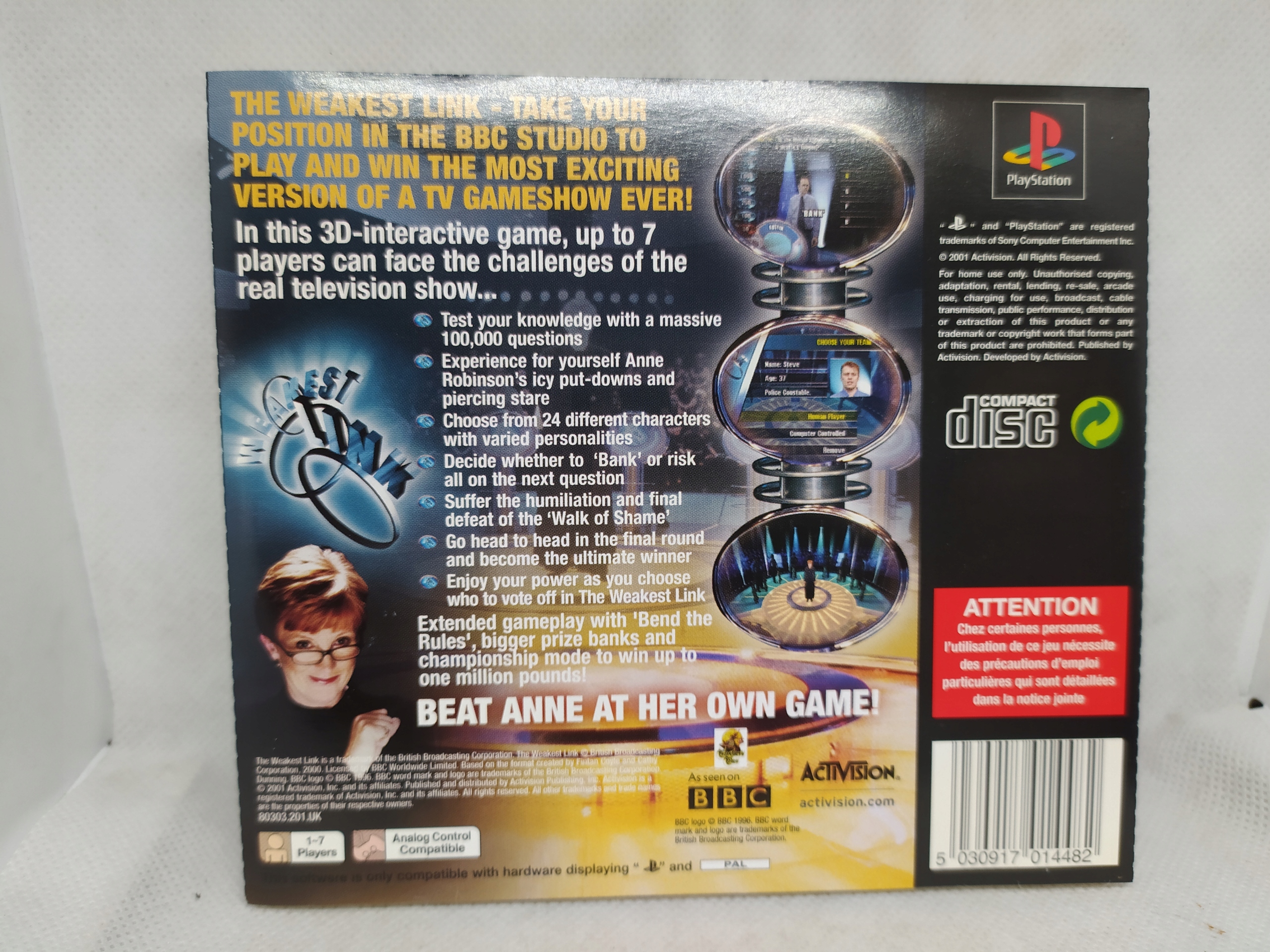The Weakest Link — это игра, основанная на известной телепрограмме в Польше под названием Najweaksze Ogniwo. Виртуальная среда представляет собой идеальное воспроизведение оригинальной трансляции BBC. Роль ведущей была доверена Анне Робинсон, одетой, как всегда, в черное. Она появляется в игре со всеми своими знаменитыми высказываниями (в том числе: «Ты самое слабое звено — до свидания»). Конечно, если у игроков хватит смелости, они могут затеять полемику с хозяйкой.