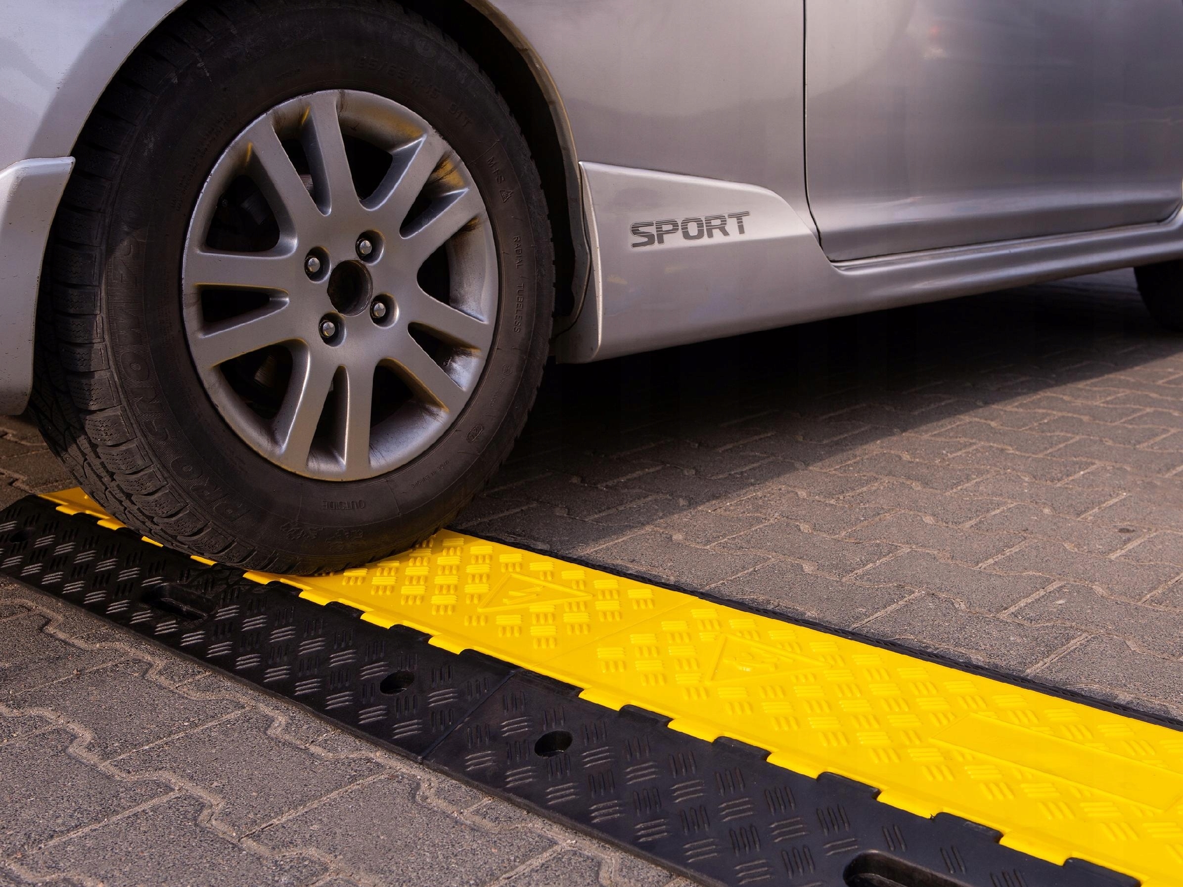 Отверстия для винтов позволяют прикрепить пандусы к земле, чтобы они не смещались при наезде на них транспортных средств.