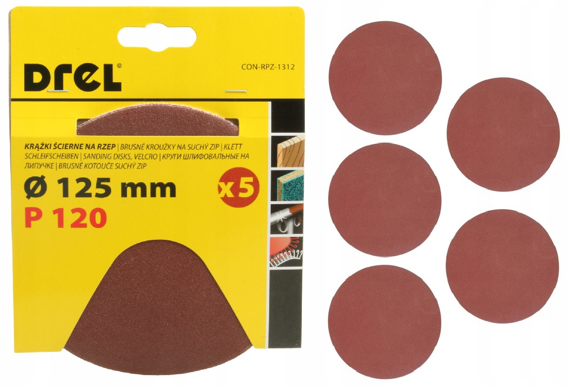 ШЛІКУВАЛЬНІ ДИСКИ P120 ШЛІФУВАЛЬНИЙ ПАПІР ДЛЯ ШЛІФАЛЬНОЇ МАШИНИ 125 мм ДИСК НА ЛИПУЧКІ 5X