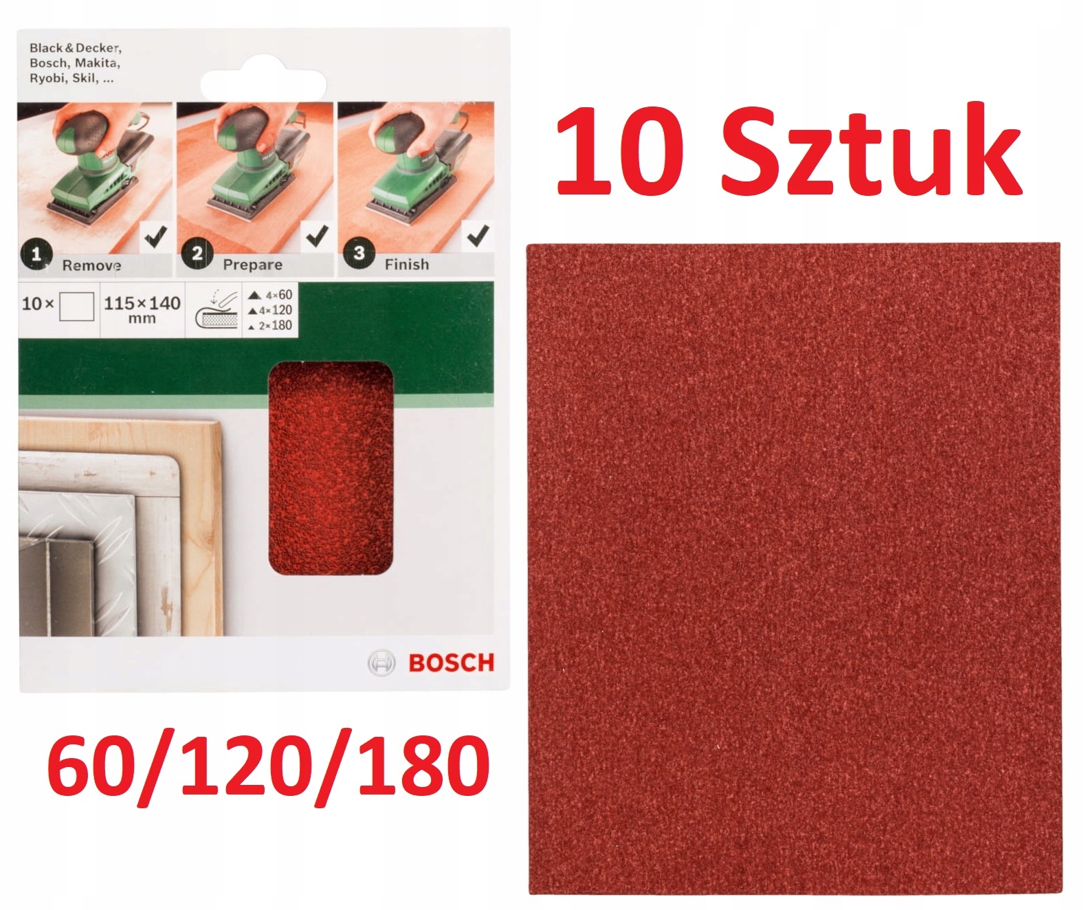Наждачний папір BOSCH 115х140мм P60/120/180 2609256B18 - 10 шт.