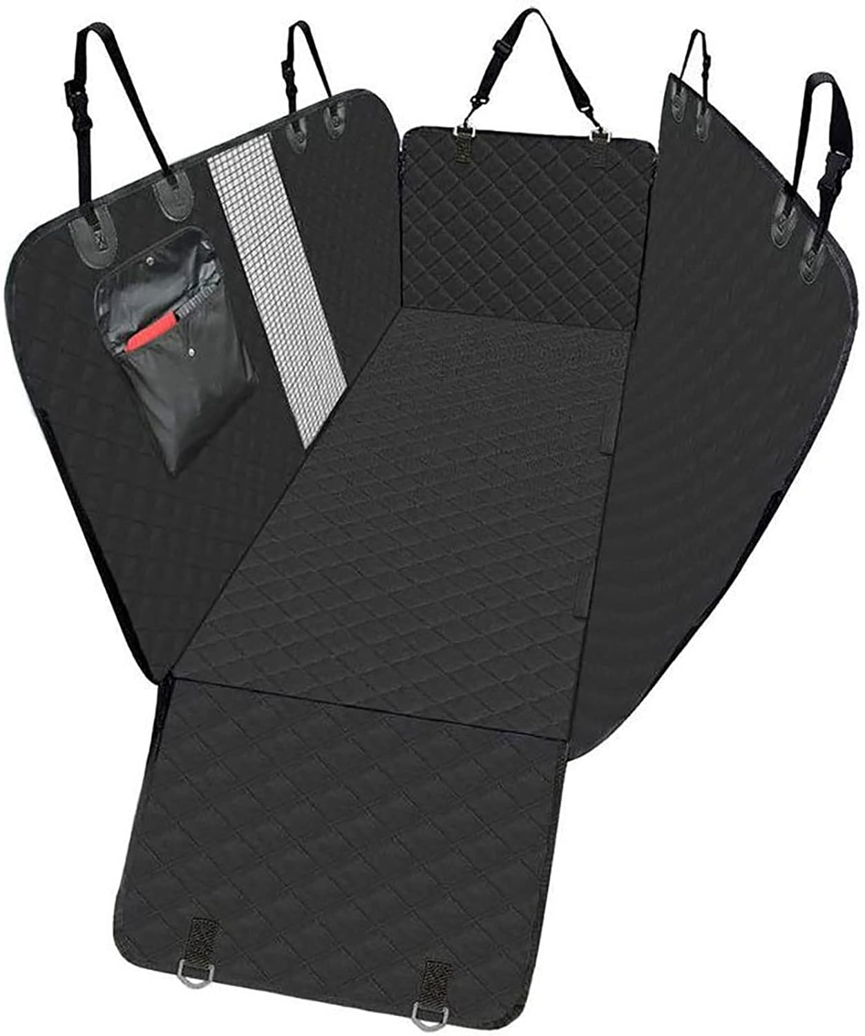 Универсальный дизайн. Эти чехлы на сиденья для собак идеально подходят для большинства легковых автомобилей, грузовиков и внедорожников. Используйте его в качестве грузового чехла в багажнике, чехла на заднее сиденье или в качестве гамака для собаки для полного покрытия задней части салона. Противоскользящая защита Наш чехол для сиденья для домашних животных имеет нескользящую поверхность, которая предотвращает скольжение вашей собаки каждый раз, когда вы нажимаете на тормоз. Встроенное нескользящее основание и фиксаторы сиденья предотвращают скольжение чехла сиденья. Встроенные отверстия на липучке для ремней безопасности. 100 ВОДОНЕПРОНИЦАЕМОСТЬ ИЗНОСА Изготовленный из 4-слойной ткани, этот чехол для автомобильного сиденья для собак на 100% водонепроницаем, чтобы защитить ваше сиденье от грязи, жидкости, волос или любого беспорядка, долговечен, чтобы не поцарапать кожаные сиденья, и удобен во время долгой поездки. Модернизированное сетчатое окно и удобный карман для хранения обеспечивают вашей собаке лучшую циркуляцию воздуха, а также обеспечивают комфорт вашей собаке, находясь на заднем сиденье. Важно, чтобы ваша собака могла ясно видеть вас через окно, что может эффективно помочь вашей собаке уменьшить беспокойство и сохранять спокойствие во время путешествия. В удобном кармане для хранения на чехле на заднем сиденье собаки можно легко хранить еду, поилки и игрушки. Легко установить и очистить: снять или надеть чехол на заднее сиденье вашей собаки займет всего несколько секунд. Легко чистить влажной тряпкой или пылесосом. Чехол на автокресло для домашних животных — отличный подарок для любого любителя домашних животных.