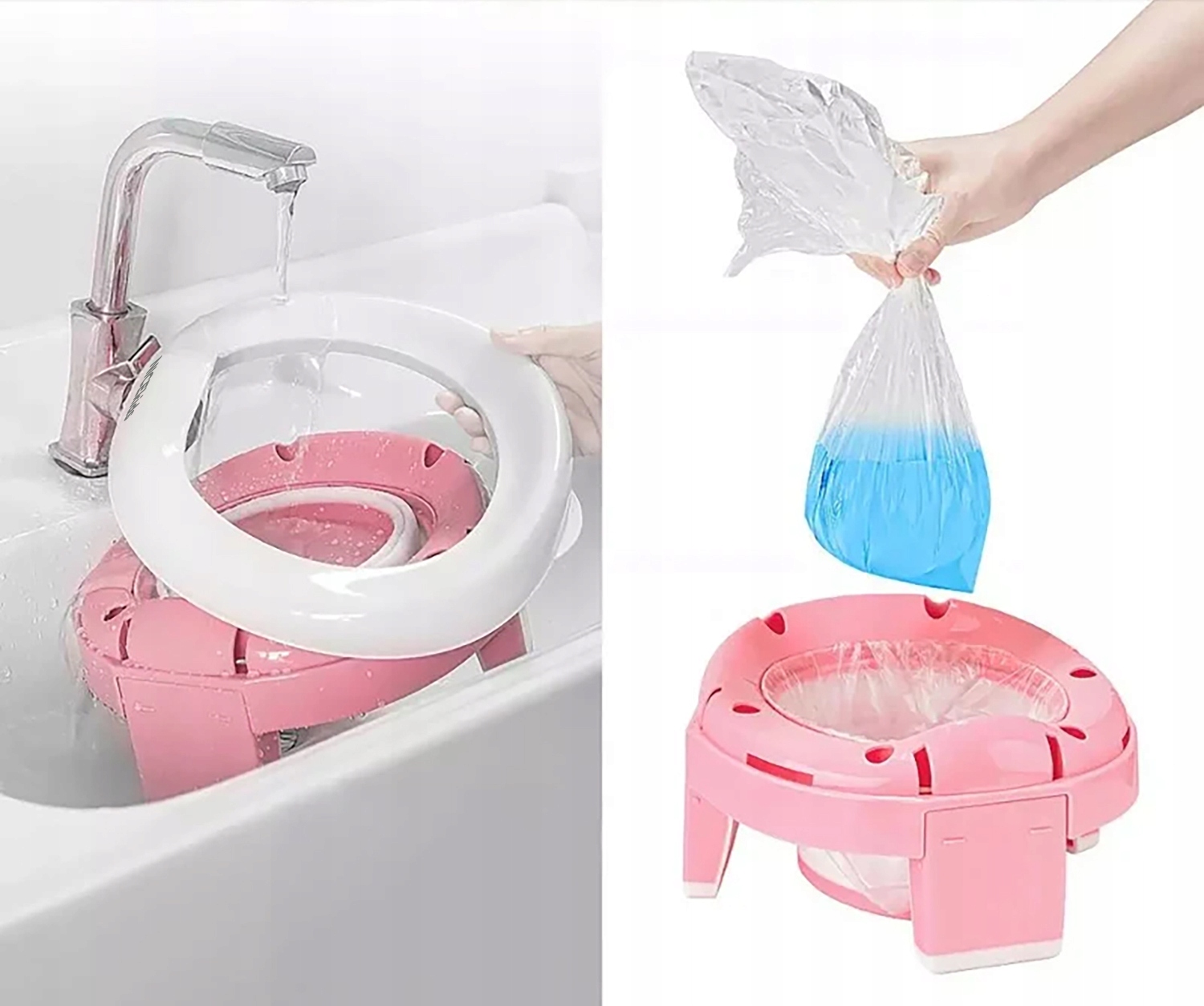 Необходимо всего несколько движений, чтобы разложить и сложить горшок, а также превратить его в сиденье для унитаза.