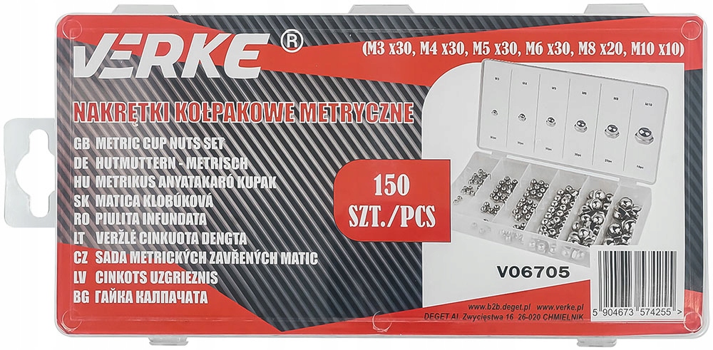 КРЫШКОВЫЕ ГАЙКИ МЕТРИЧЕСКИЕ M3-M10 150 ШТ. VERKE