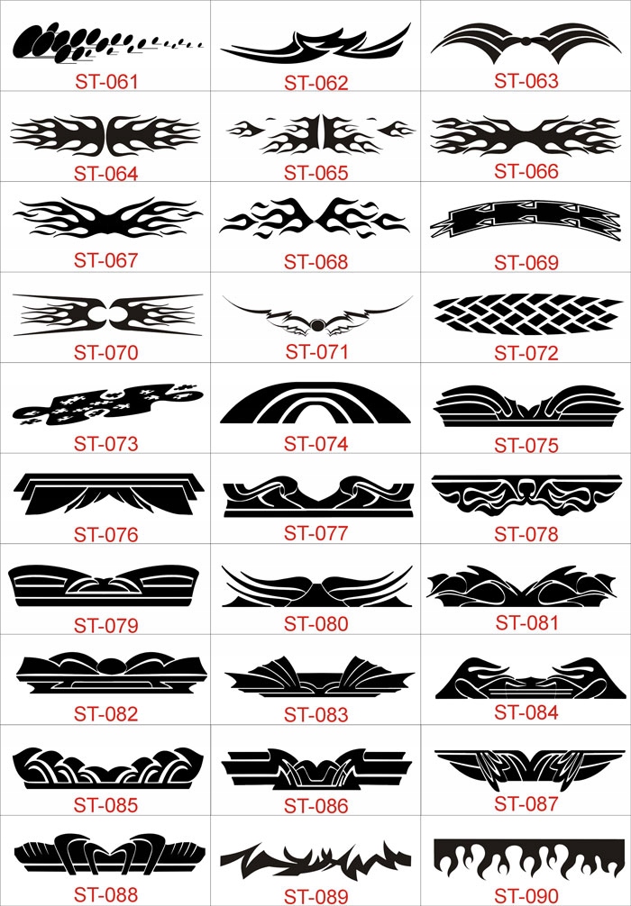 Наши плоттерные наклейки не имеют лишнего фона. Рисунок и надпись наклейки переносятся с помощью трансферной фольги, которую после наклеивания необходимо удалить. Наклейкой является только то, что видно на рисунке в цвете, отличном от белого (обычно узоры представлены в черном цвете). То, что находится внутри наклейки, показано на рисунке белым цветом, после наклеивания будет цвета покрытой поверхности. Пример ниже: левая наклейка до приклеивания, сразу после приклеивания