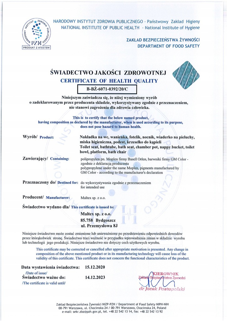 Продукция MALTEX BABY имеет Сертификат качества здоровья Национального института гигиены.