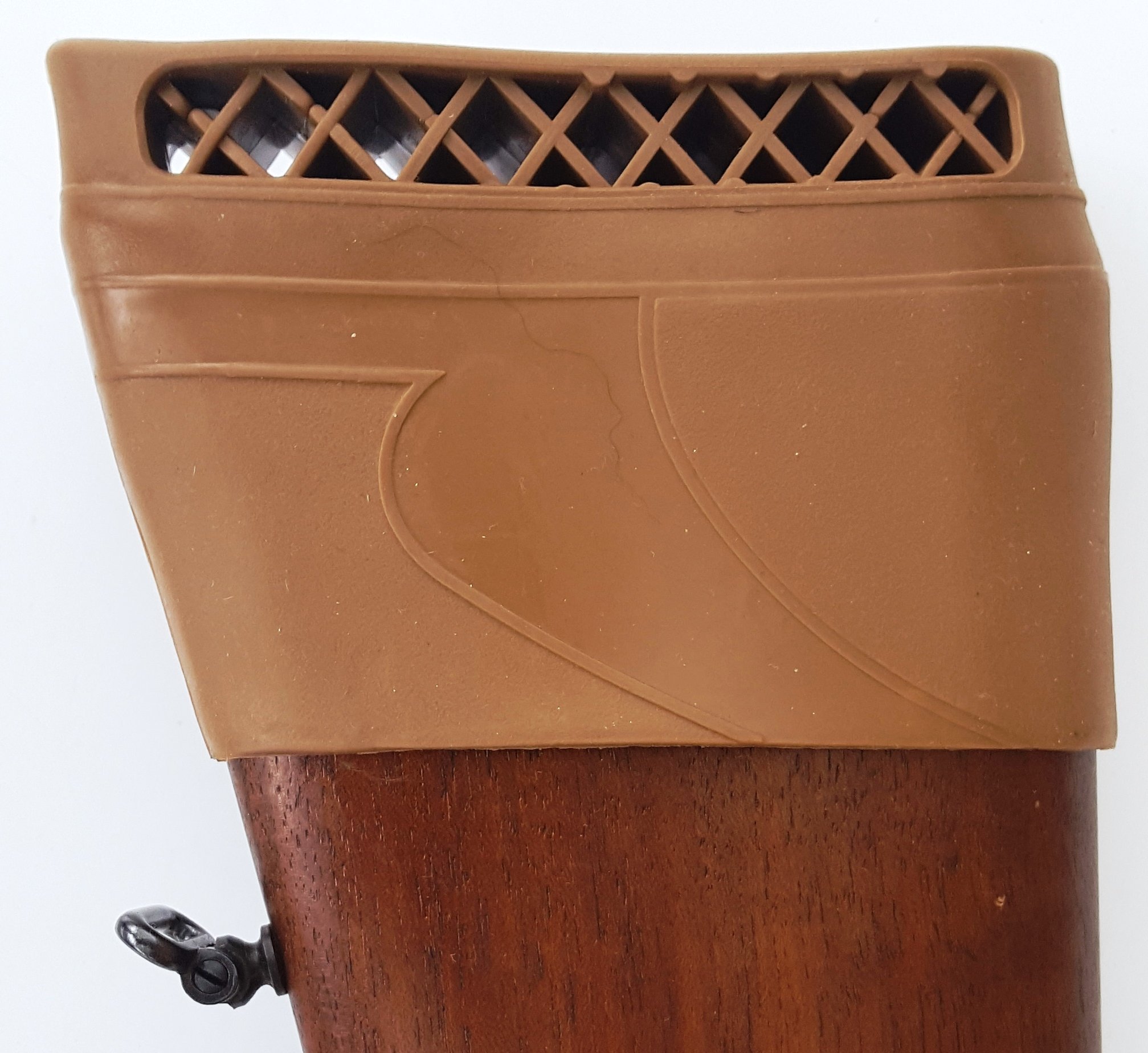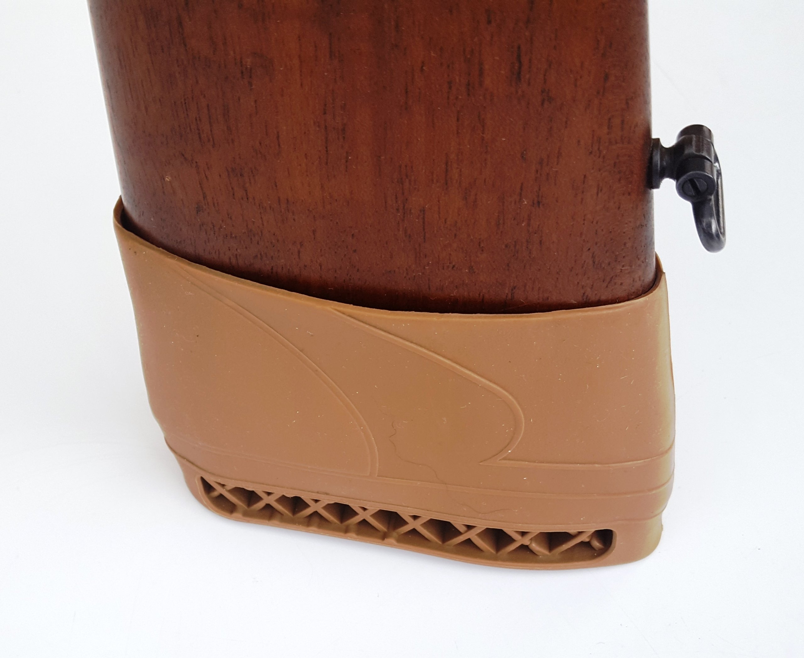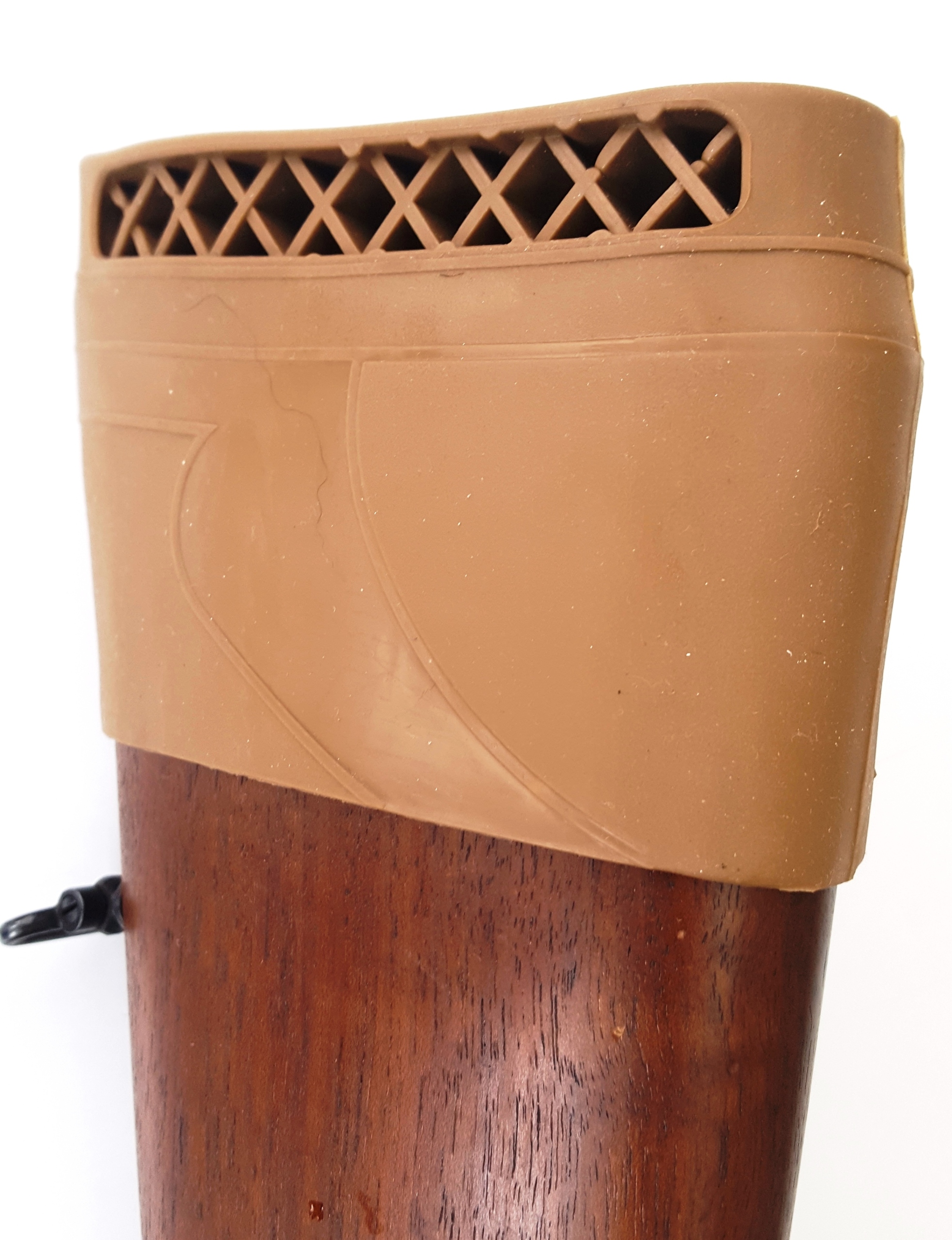 Коричневый футер. Он имеет внутри многочисленные отверстия, благодаря чему амортизирующая часть толщиной 2 см очень гибкая и эффективно поглощает силу отдачи во время выстрела. Защищает руку от ударов.