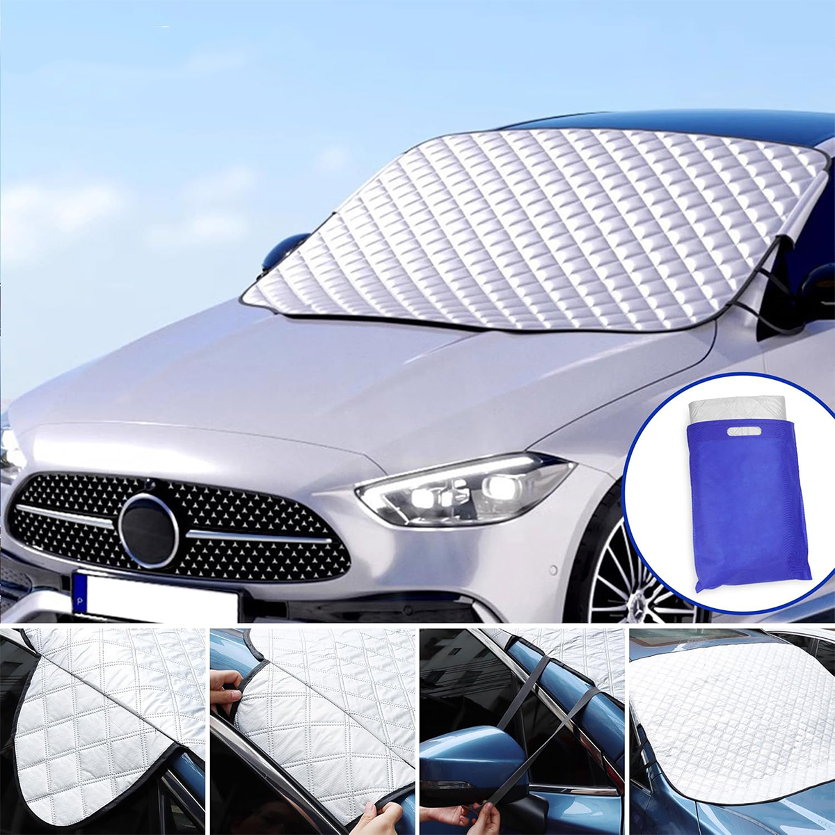 🔥ЛЕГКАЯ УСТАНОВКА: В чехле на лобовое стекло автомобиля используется двухслойное крепление с боковыми крыльями и резинками, поэтому вы можете выполнить все работы по установке и хранению в течение 15 секунд. Прилагаемую сумку для хранения удобно сложить и хранить в багажнике.