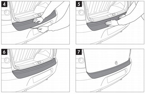 Тщательно очистите и высушите поверхность бампера, затем оторвите защитную ленту от полоски и аккуратно приклейте ее к верхней части бампера. Затем нужно прижать полоску к бамперу.