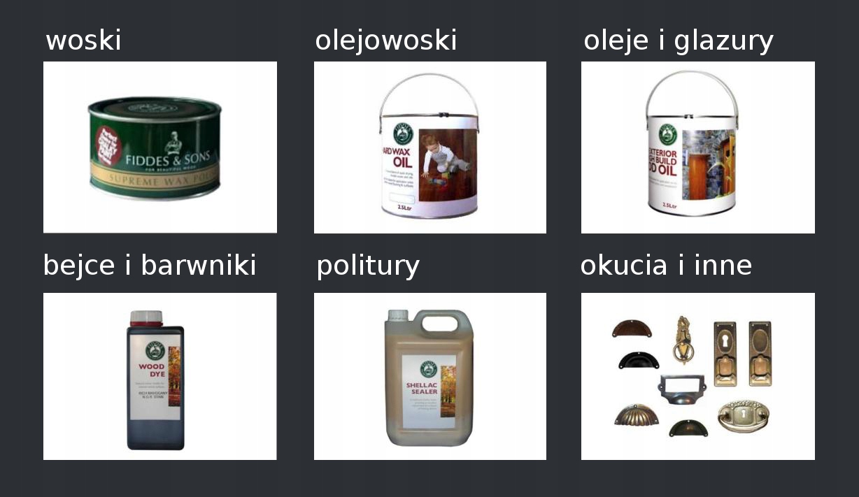 Мы являемся эксклюзивным импортером традиционных отделочных материалов из дерева британской компании Fiddes & Son, которая занимается производством воски высочайшего качества уже более ста лет, масла, масляные воски, красители для дерева и полироли. Опыт компании в производстве средств по уходу и защите древесины высочайшего качества привел к созданию широкого предложения для плотников, укладчиков паркета, реставраторов и всех тех, кто работает с деревом профессионально или любительски. Наше портфолио дополняется латунной и стальной мебельной фурнитурой, предназначенной для классической, антикварной, деревенской, а также современной мебели. Мы обладаем многолетним опытом, поэтому предоставляем помощь и технические консультации.
