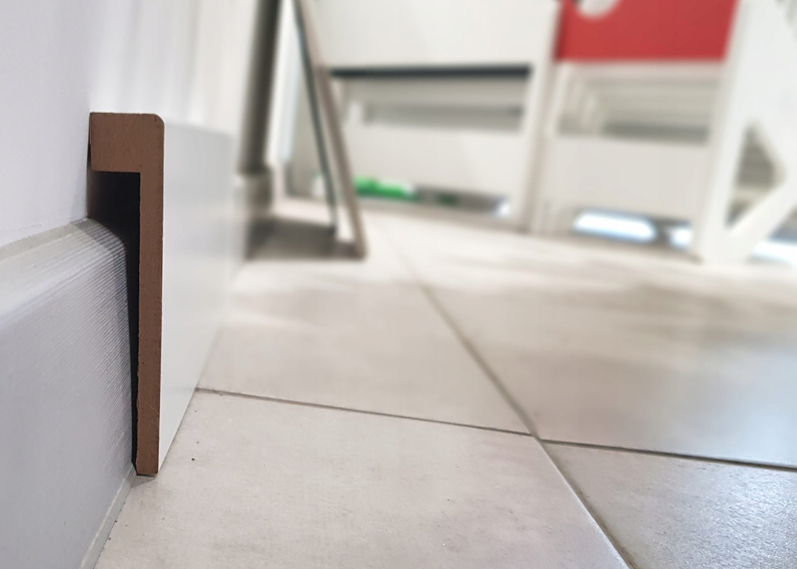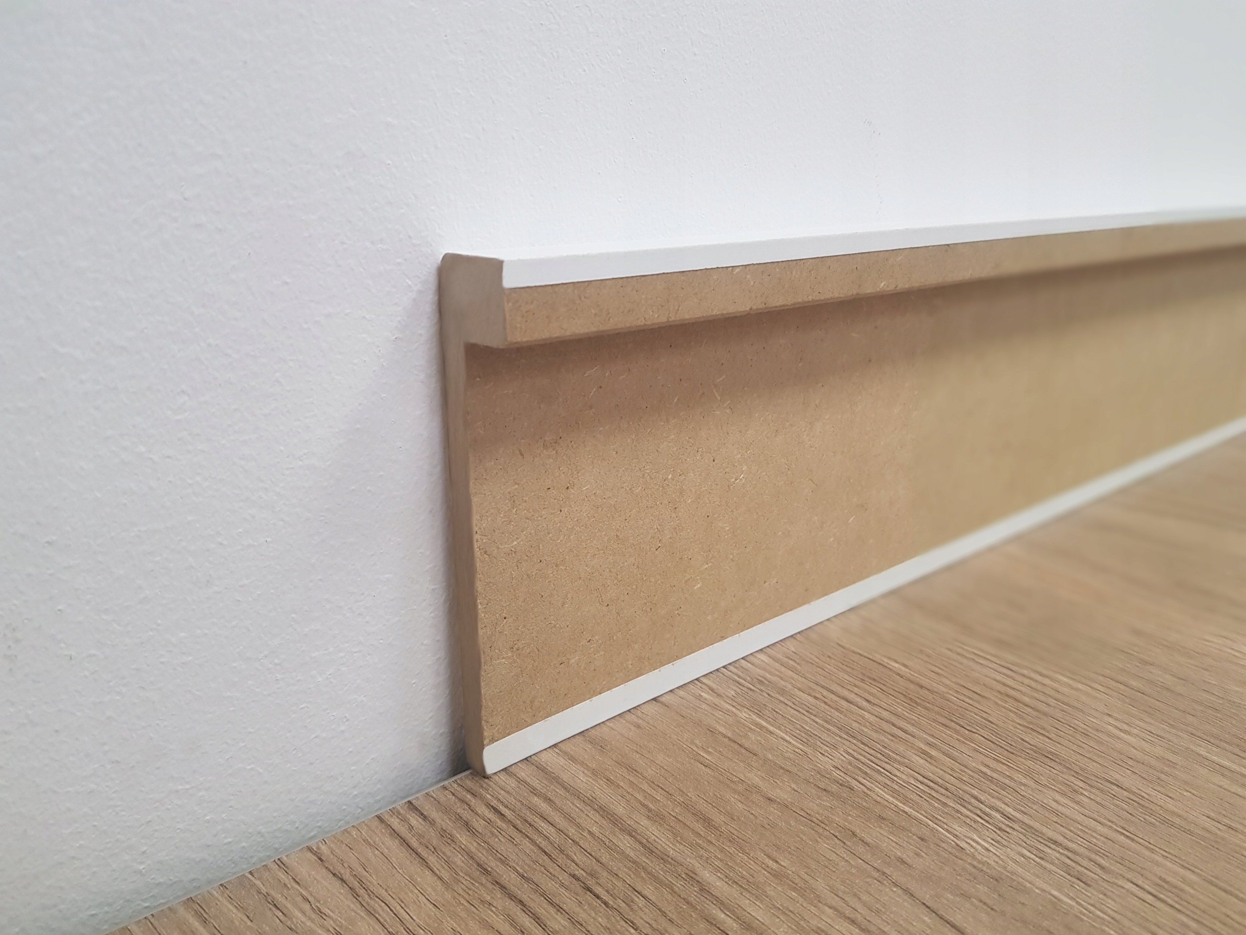 Маскировочная крышка идеально подойдет для скрытия старых плинтусов из напольной плитки, полос ПВХ или для увеличения поверхности покрытия из установленных на данный момент полос МДФ.