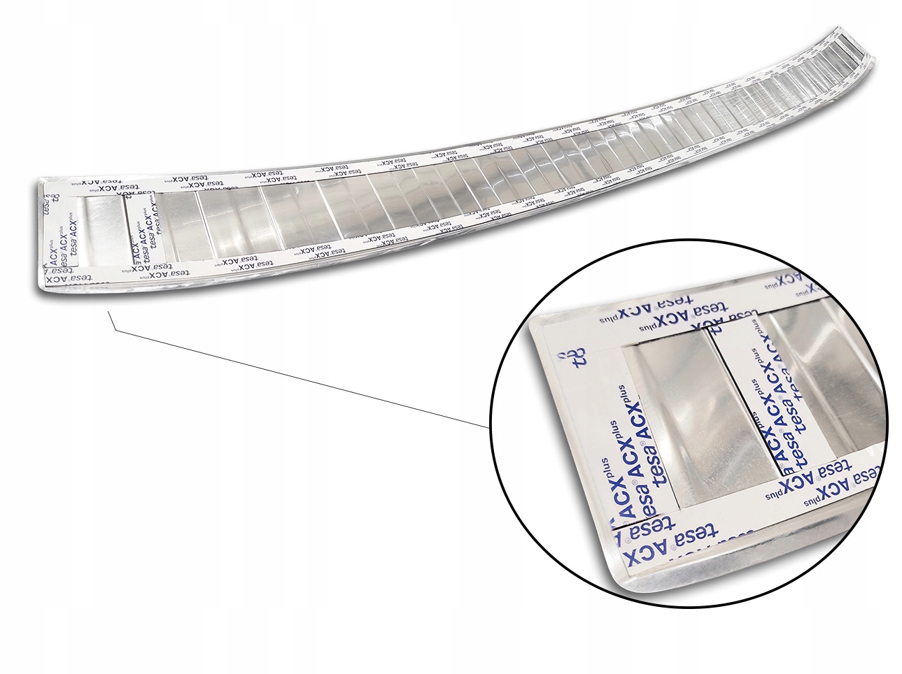 Накладка из полированной нержавеющей стали. В нем уже есть двусторонний очень прочный скотч.