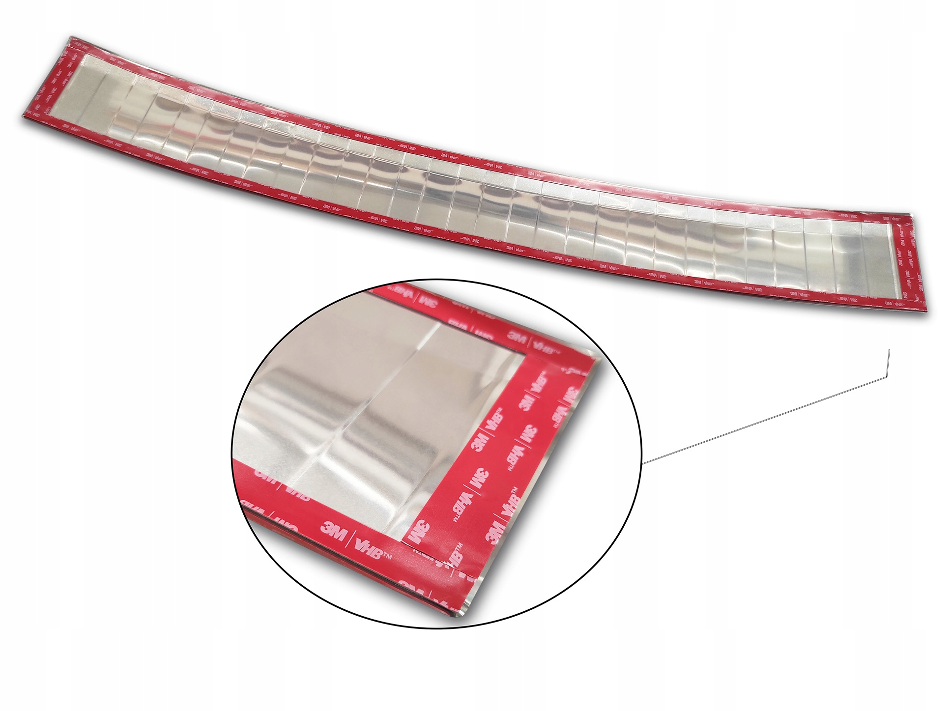 Накладка из полированной нержавеющей стали. В нем уже есть двусторонний очень прочный скотч.