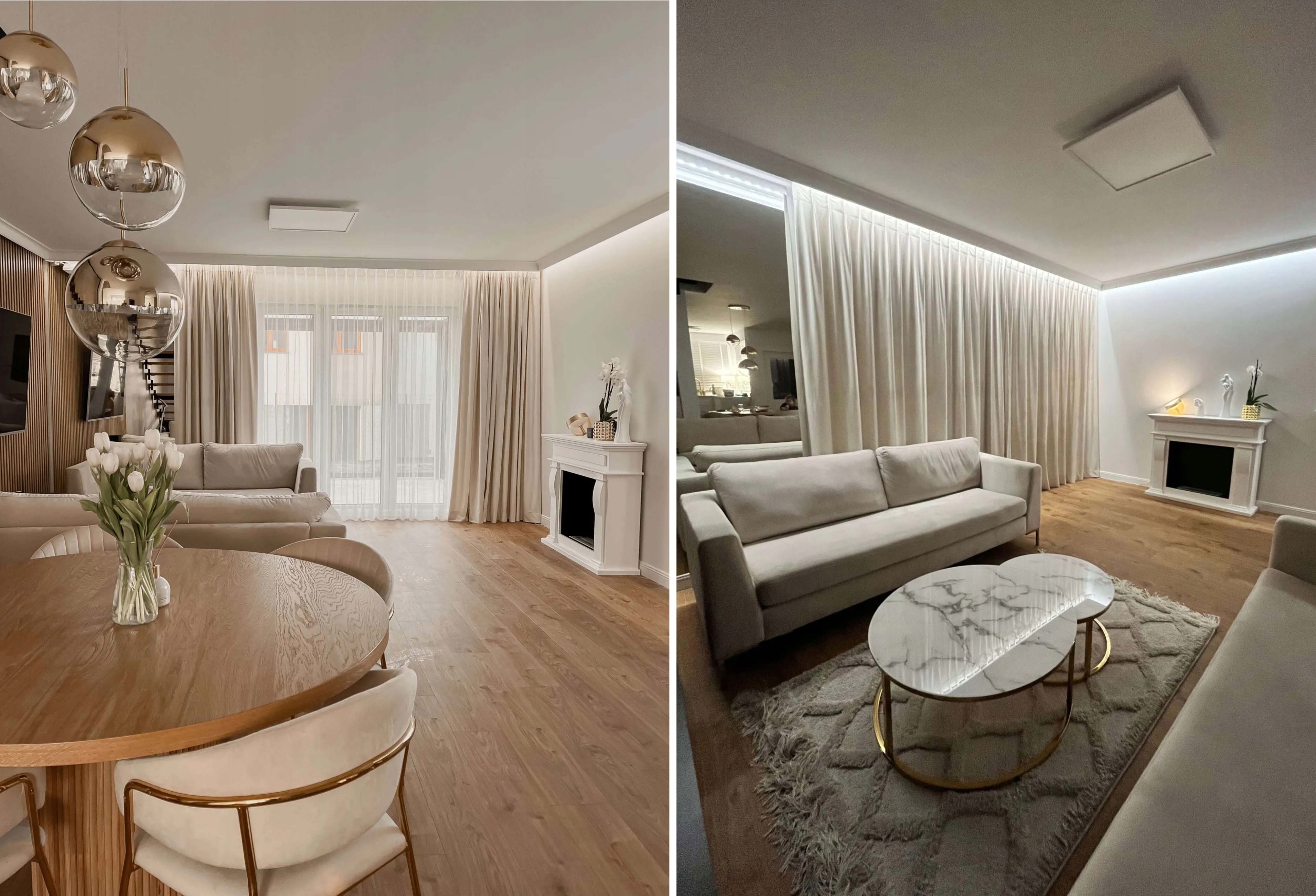 Вопреки внешнему виду, чехол для карниза не является сложным в установке. Он не требует использования дюбелей, сверления потолка или других работ, связанных со значительным вмешательством в грунт. Просто приклейте изделие к потолку с помощью специального прочного клея для штукатурки Mardom Max. Скрытые карнизы в интерьере еще никогда не были так просты в реализации.