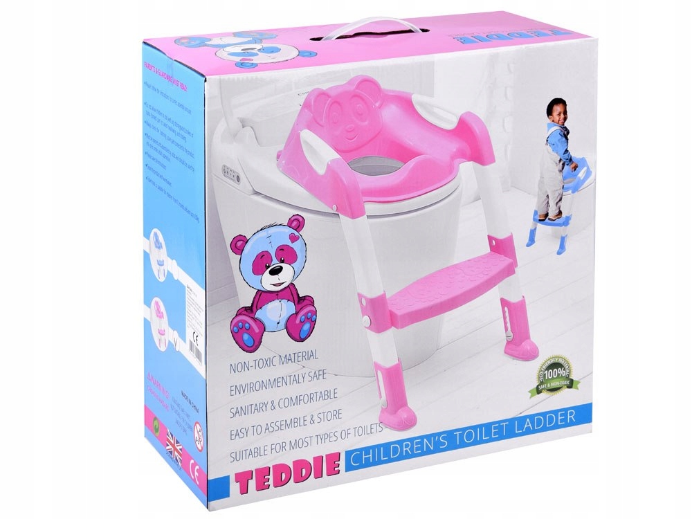 Все сделано из высококачественного пластика приятного для глаз цвета. Рельефная голова плюшевого мишки на спинке создает дружелюбную атмосферу и побуждает ребенка сходить в туалет. Ступеньки не только выглядят забавно, но и обладают противоскользящей функцией.