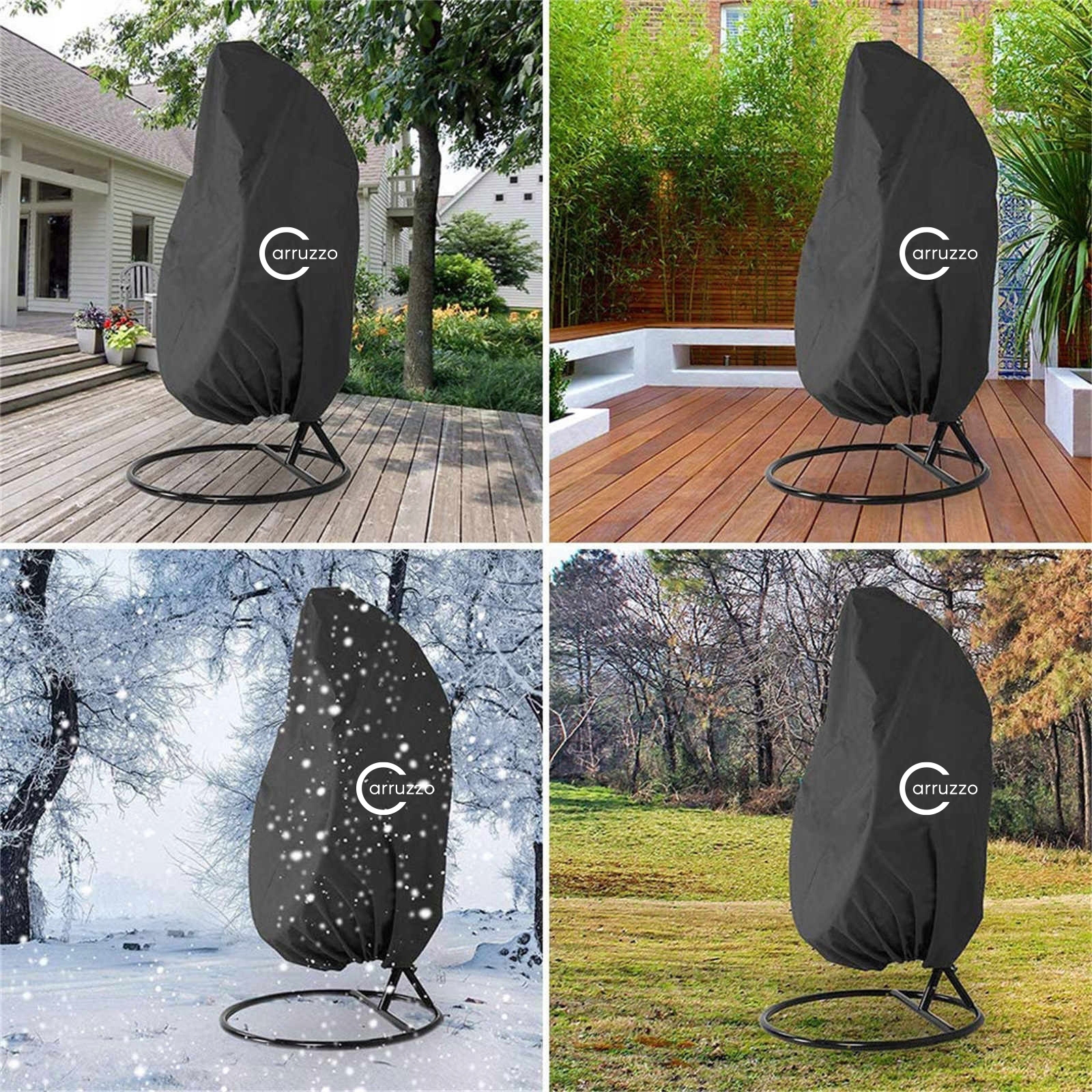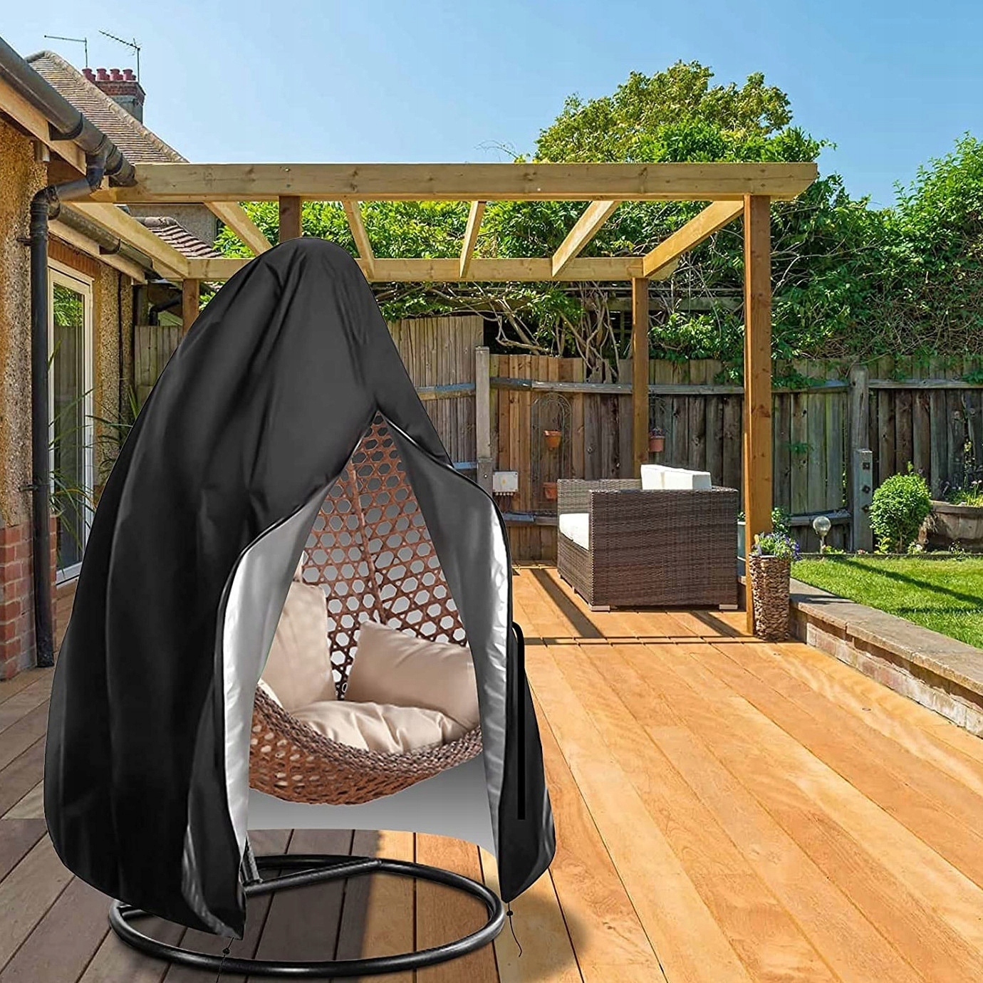 Чехол эффективно защитит ваше подвесное кресло от вредного воздействия погодных условий. Он изготовлен из очень прочного, но мягкого полиэстера. Устойчив к вредным погодным условиям, ультрафиолетовым лучам, водонепроницаем. Шнурок и молния облегчают надевание и обеспечивают еще большую защиту корзины и подушки.